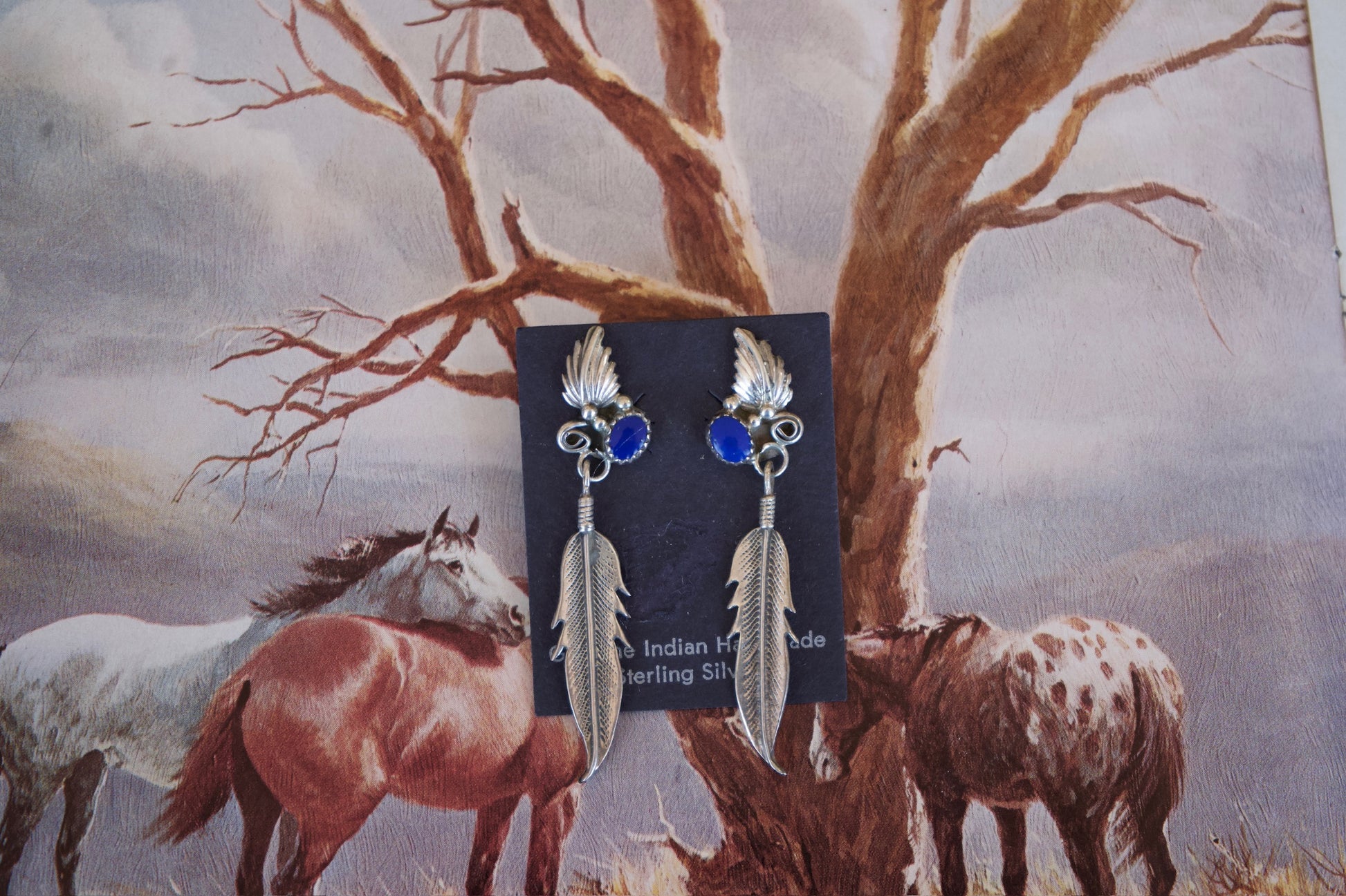Lapis Lazuli Post Earrings with Feather Dangle