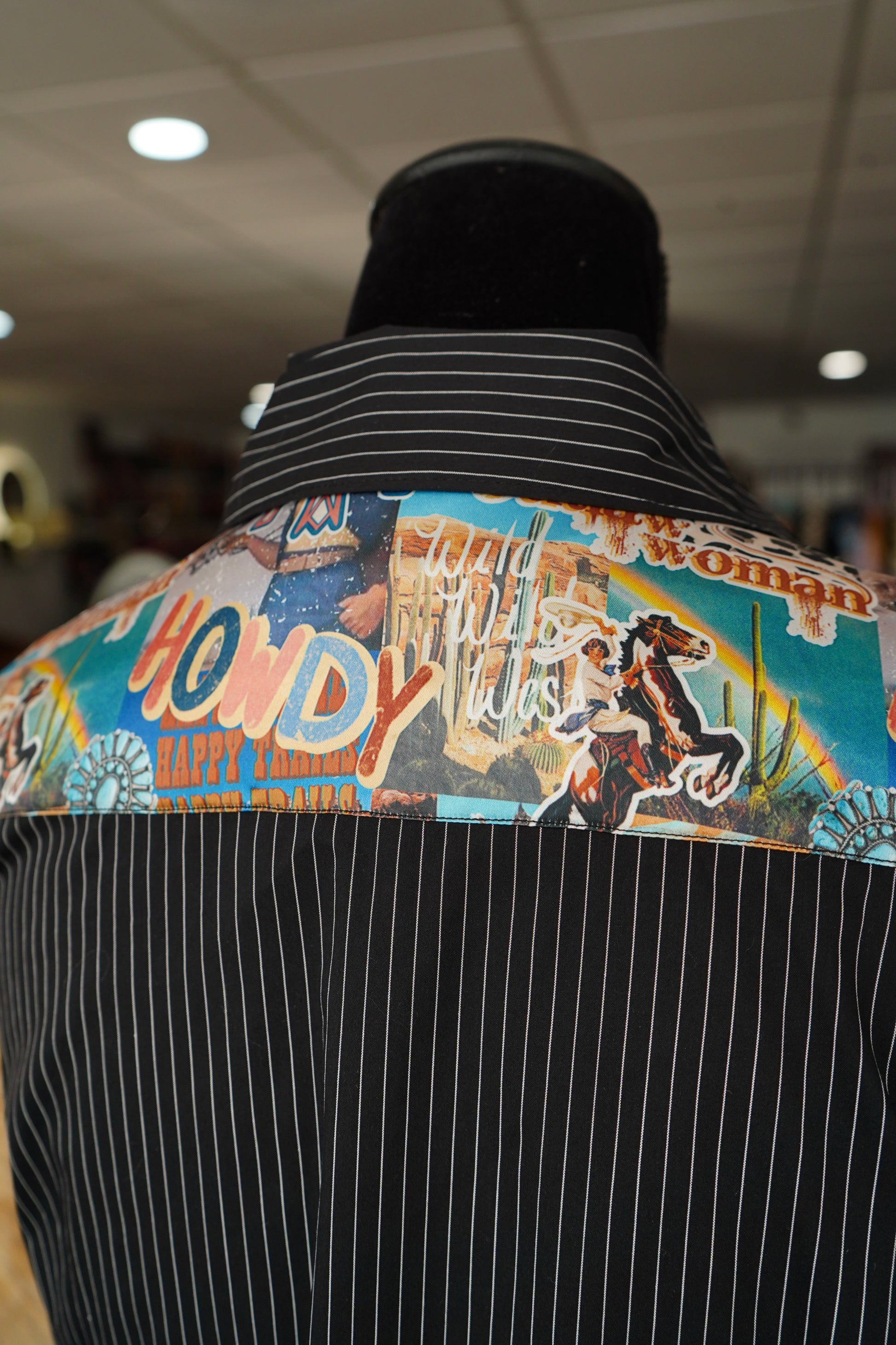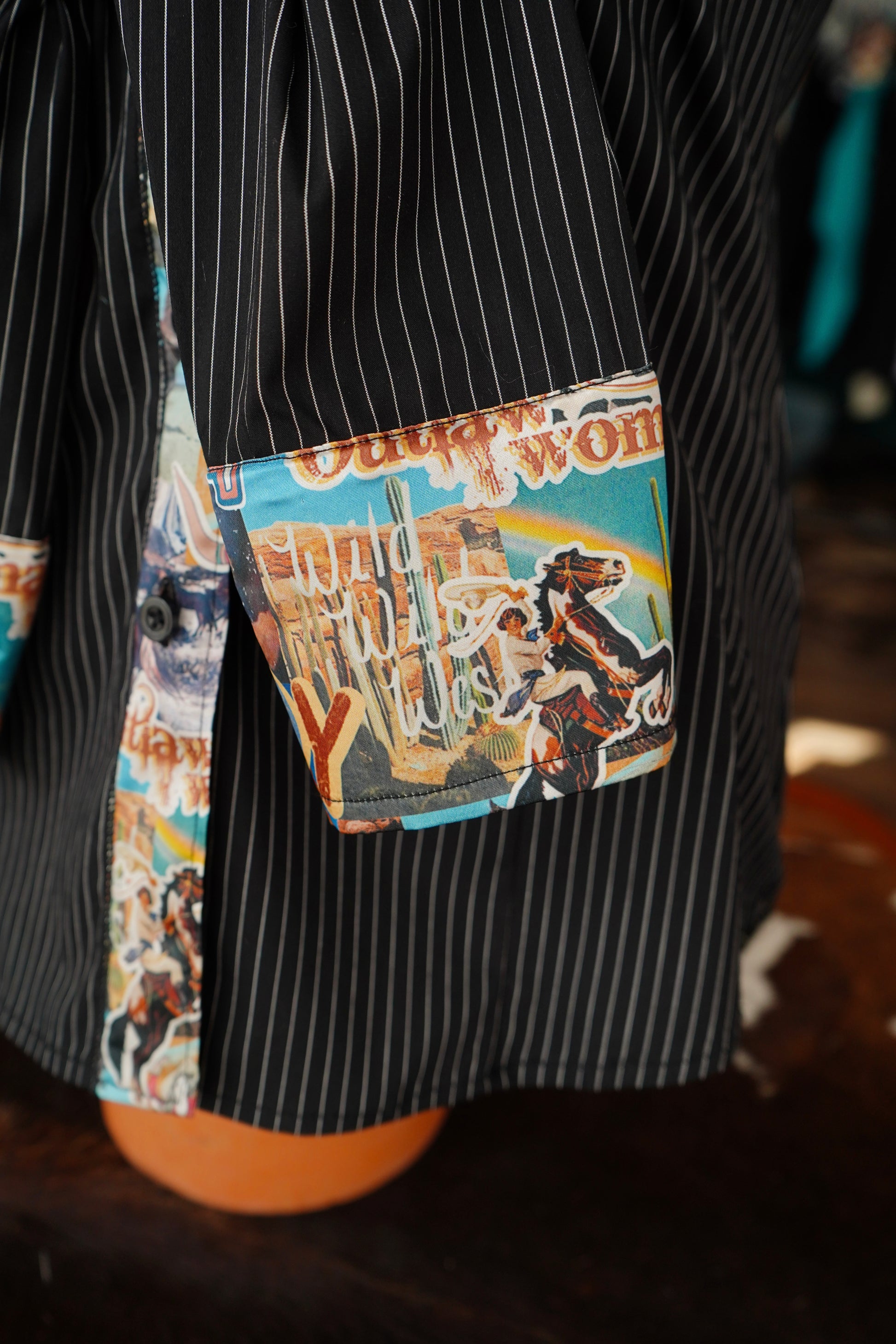 M - Calamity Jane on B/W Stripe Cotton Button Down