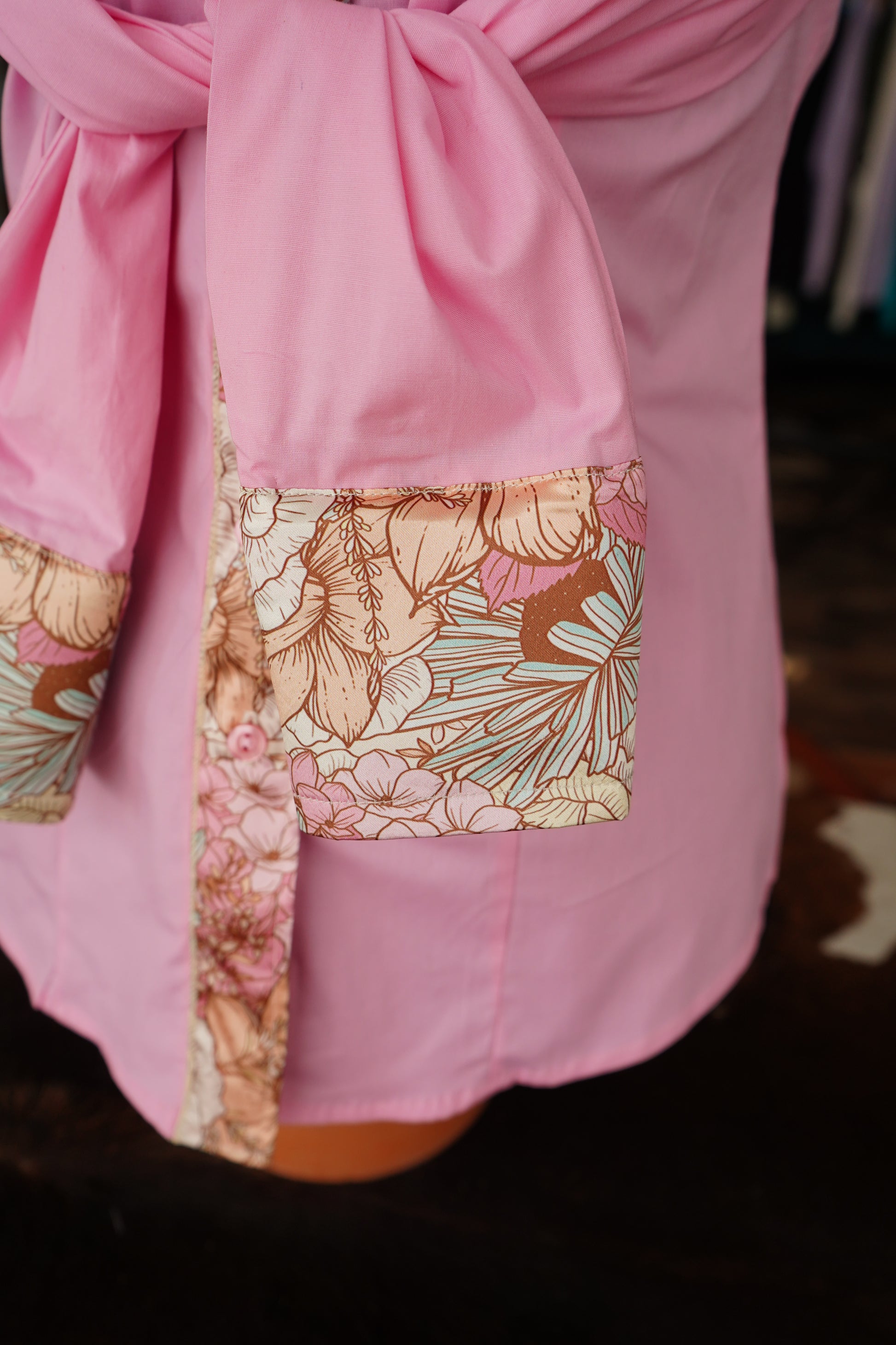 M - Pastel Daisy Floral on Light Pink Cotton Button Down