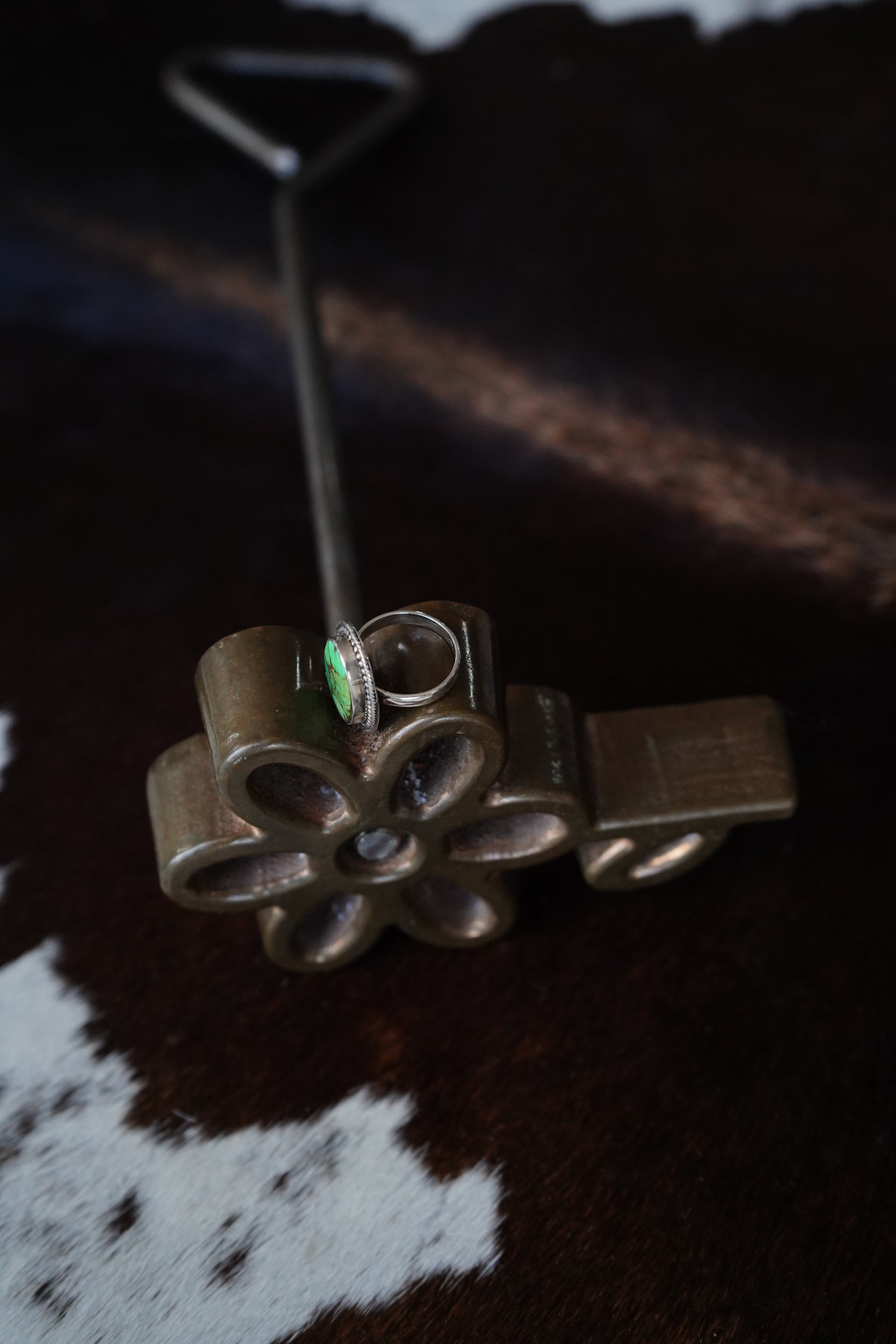 Oval Green Dahlia Ring w/ Rope & Beaded Border Ring - Sz 7