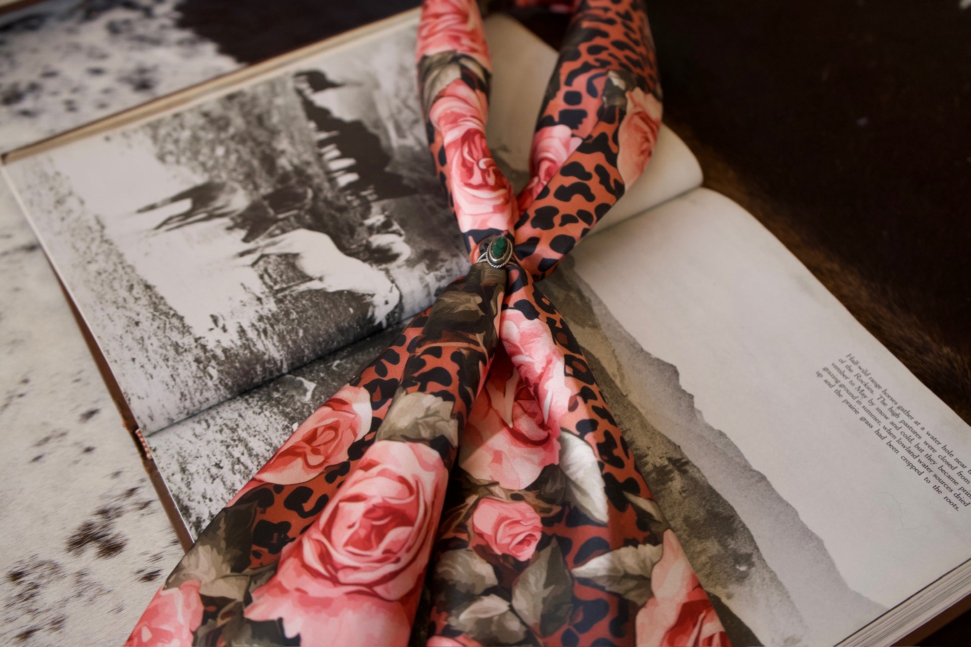 Pink Roses on Cheetah Wild Rag