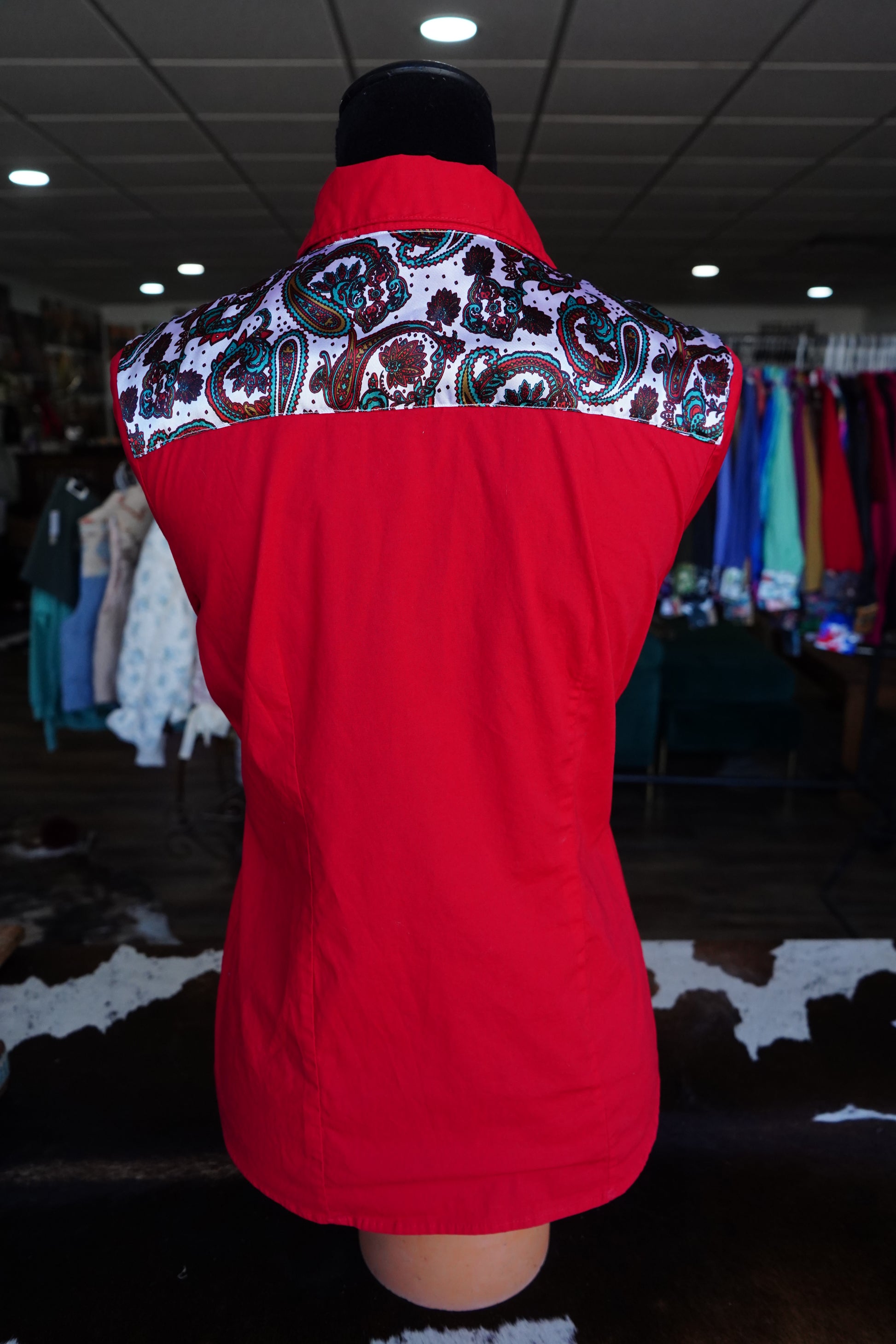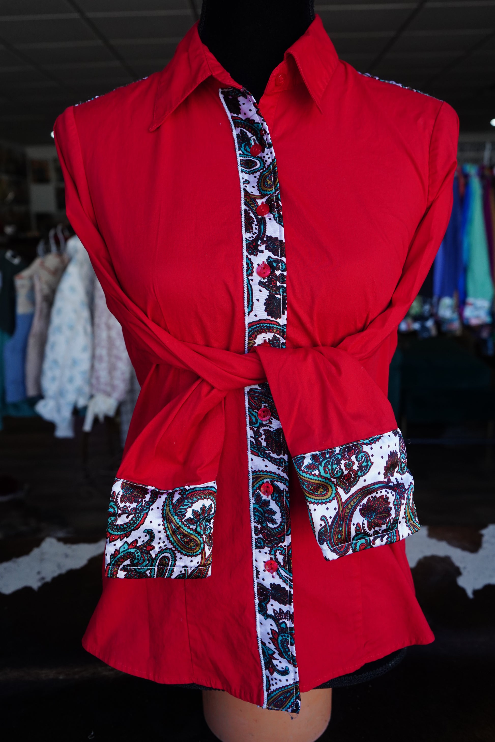 PRELOVED - L - Patriotic Paisley on Red Cotton Button Down