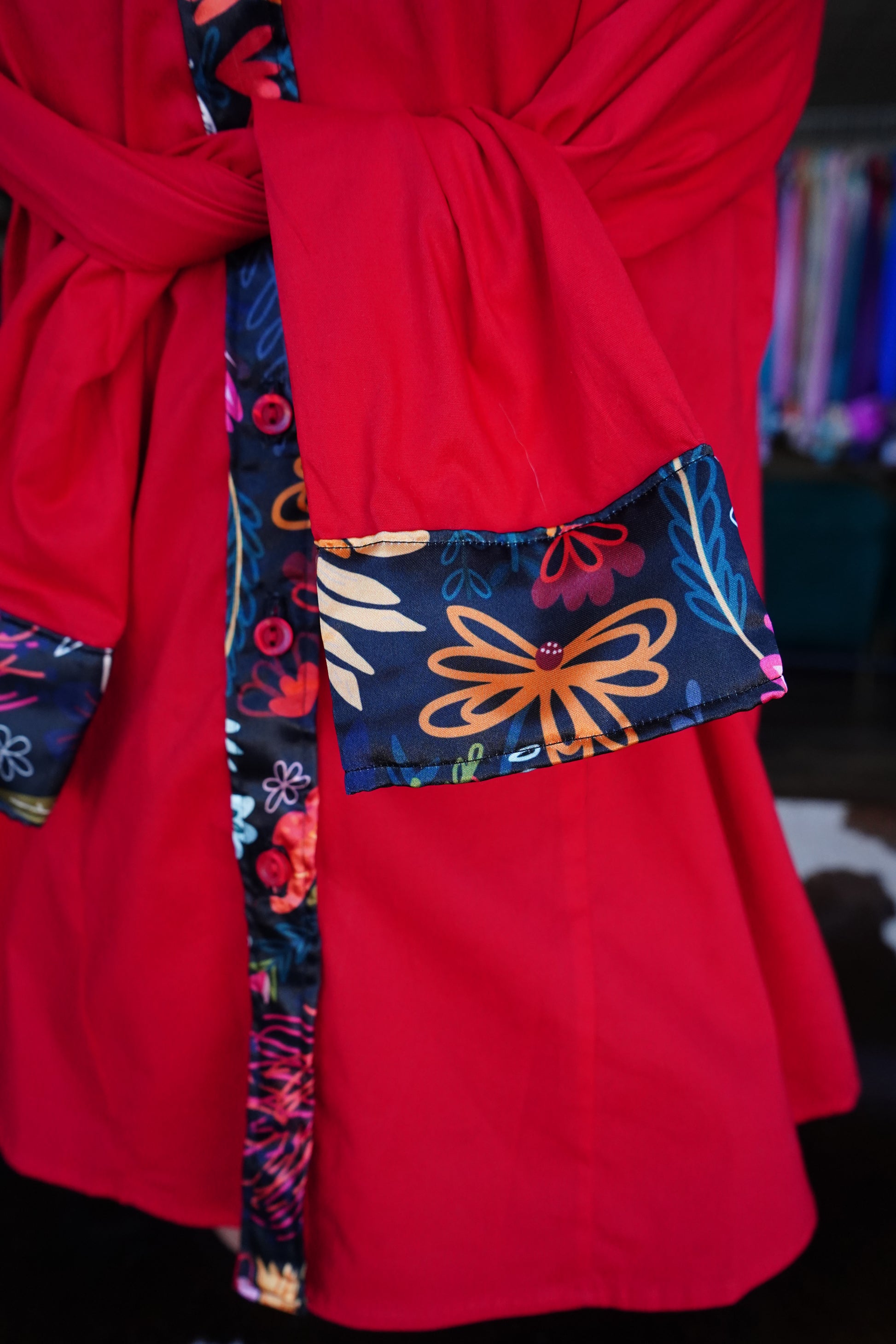PRELOVED - XL - Black Wildflower Mix on Red Cotton Button Down