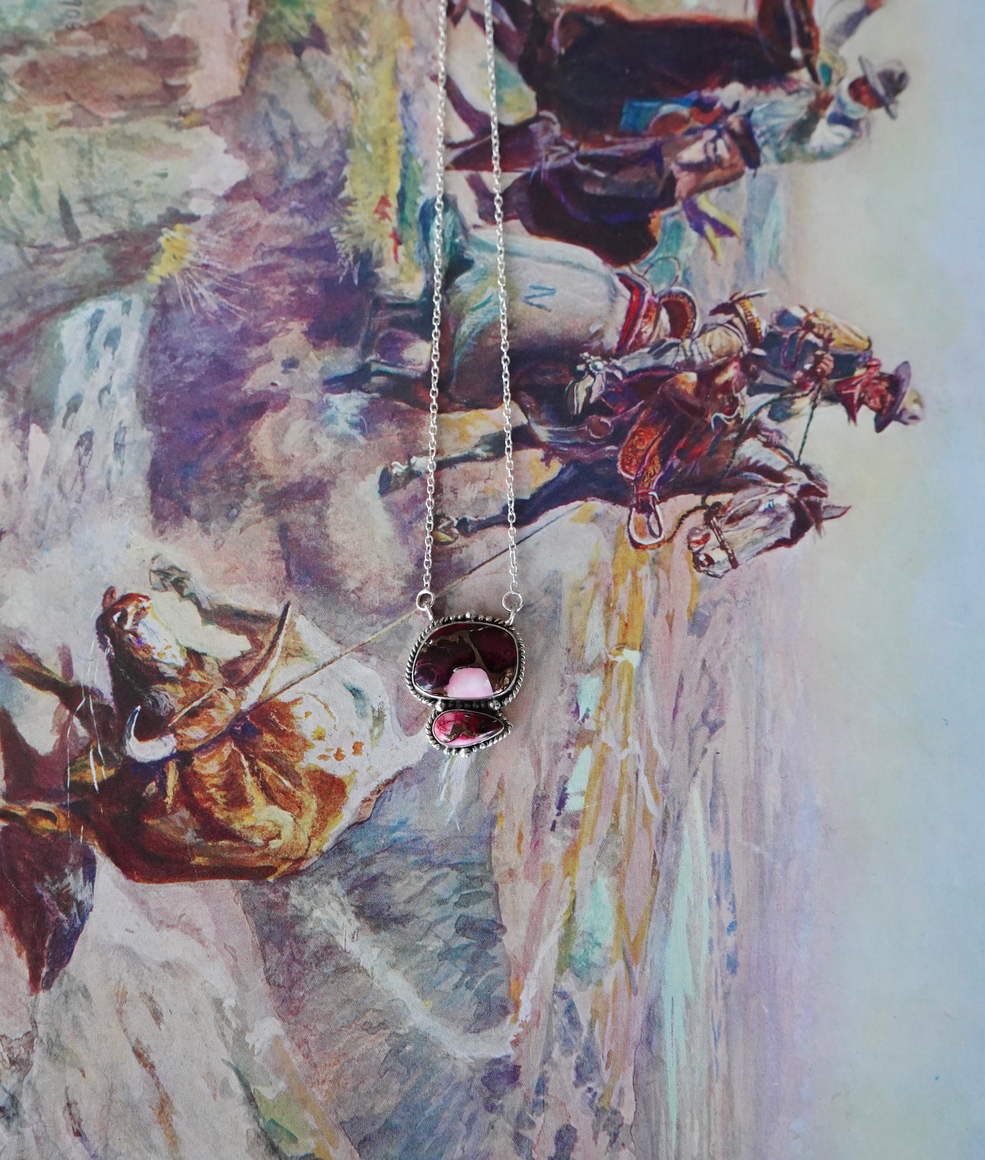 Rose Dahlia Bar w/ Teardrop Accent Necklace