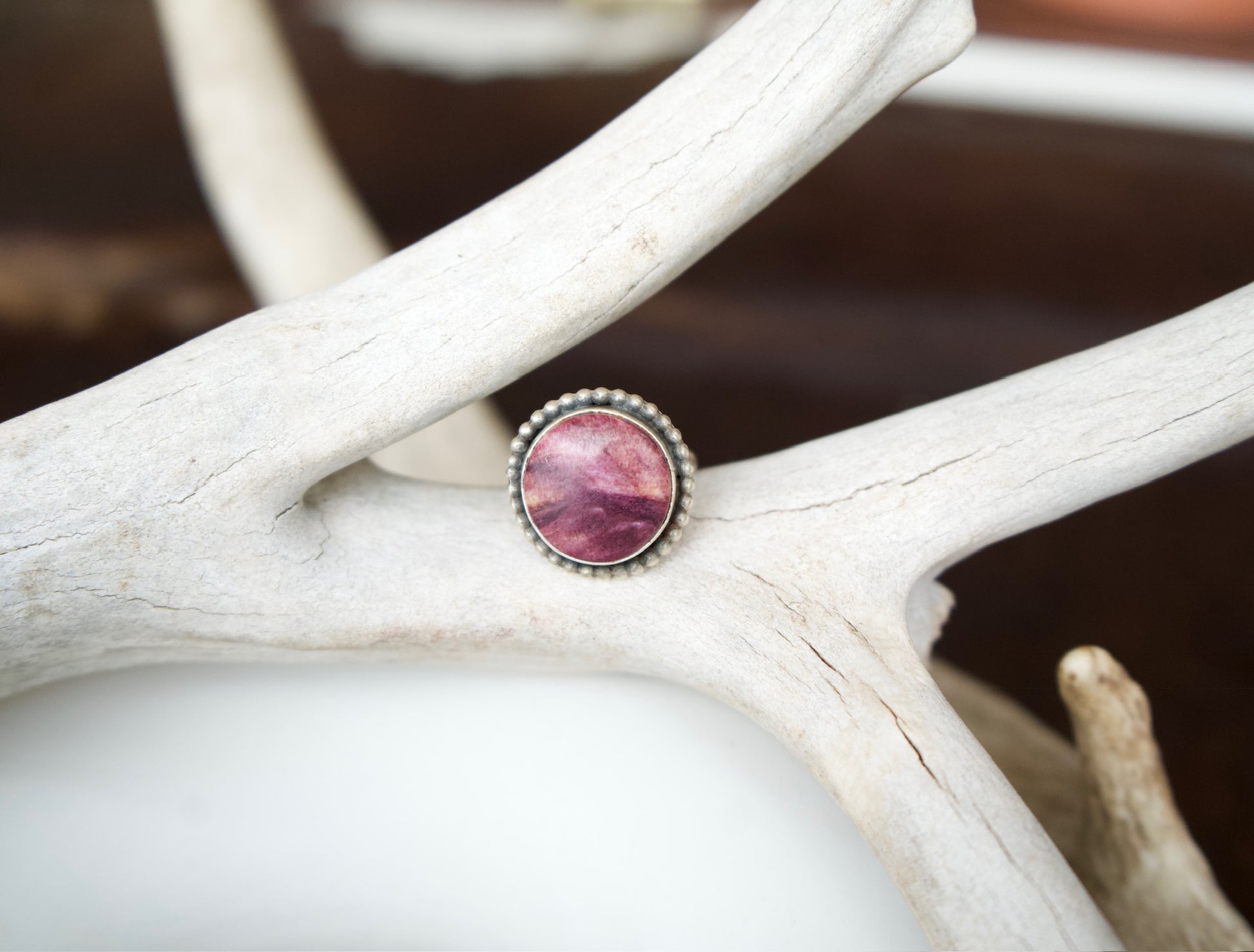 Round Purple Spiny Oyster Ring - Size 7.5