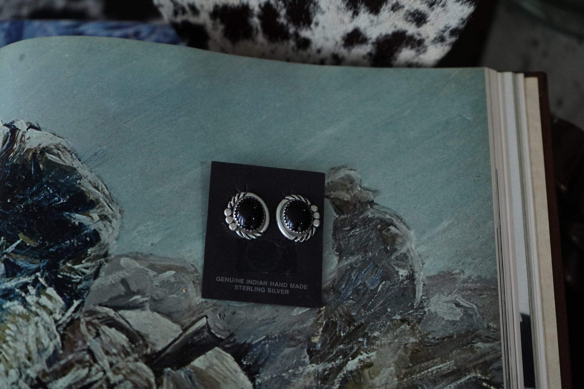 Round Vintage Black Onyx Clip On Earrings