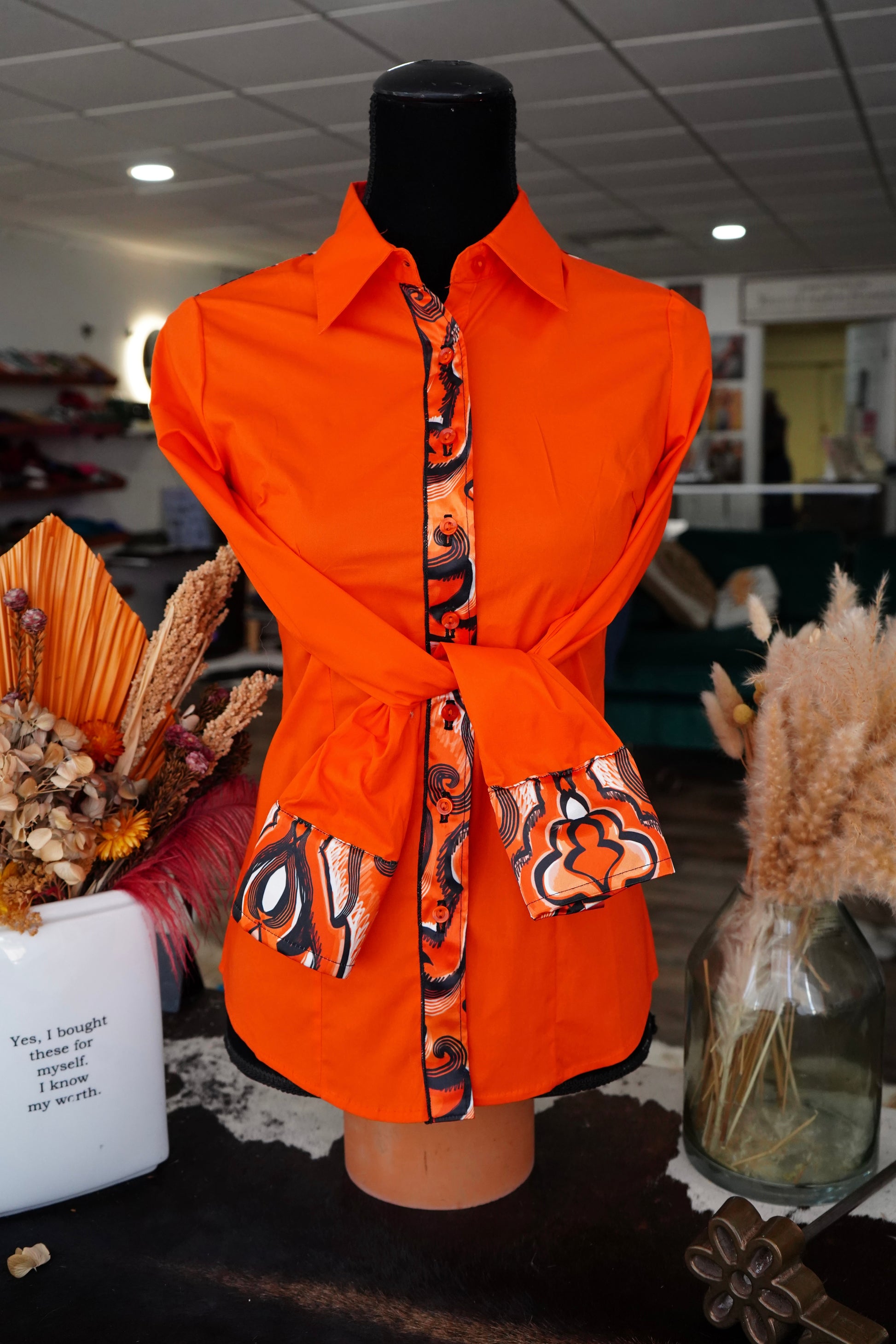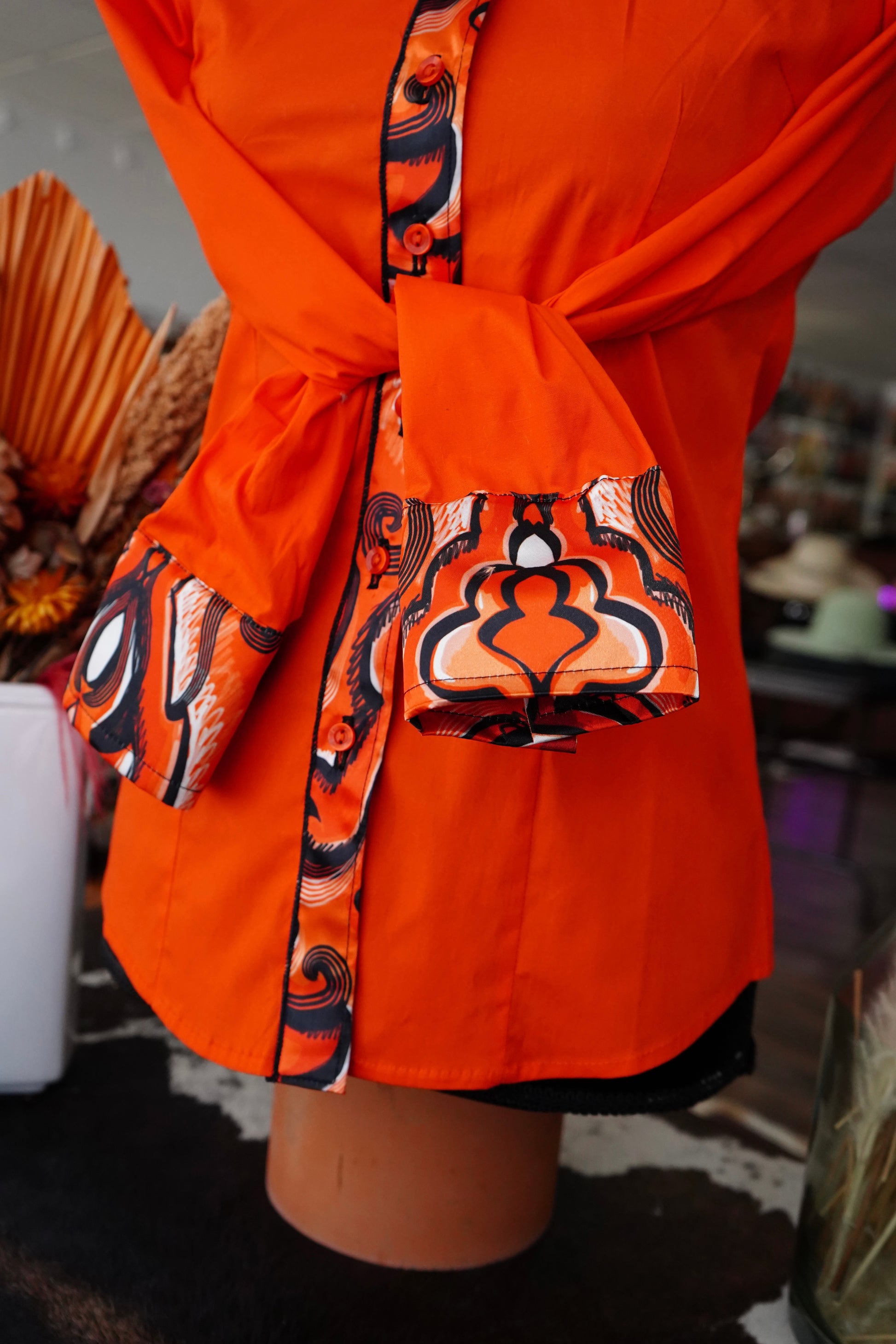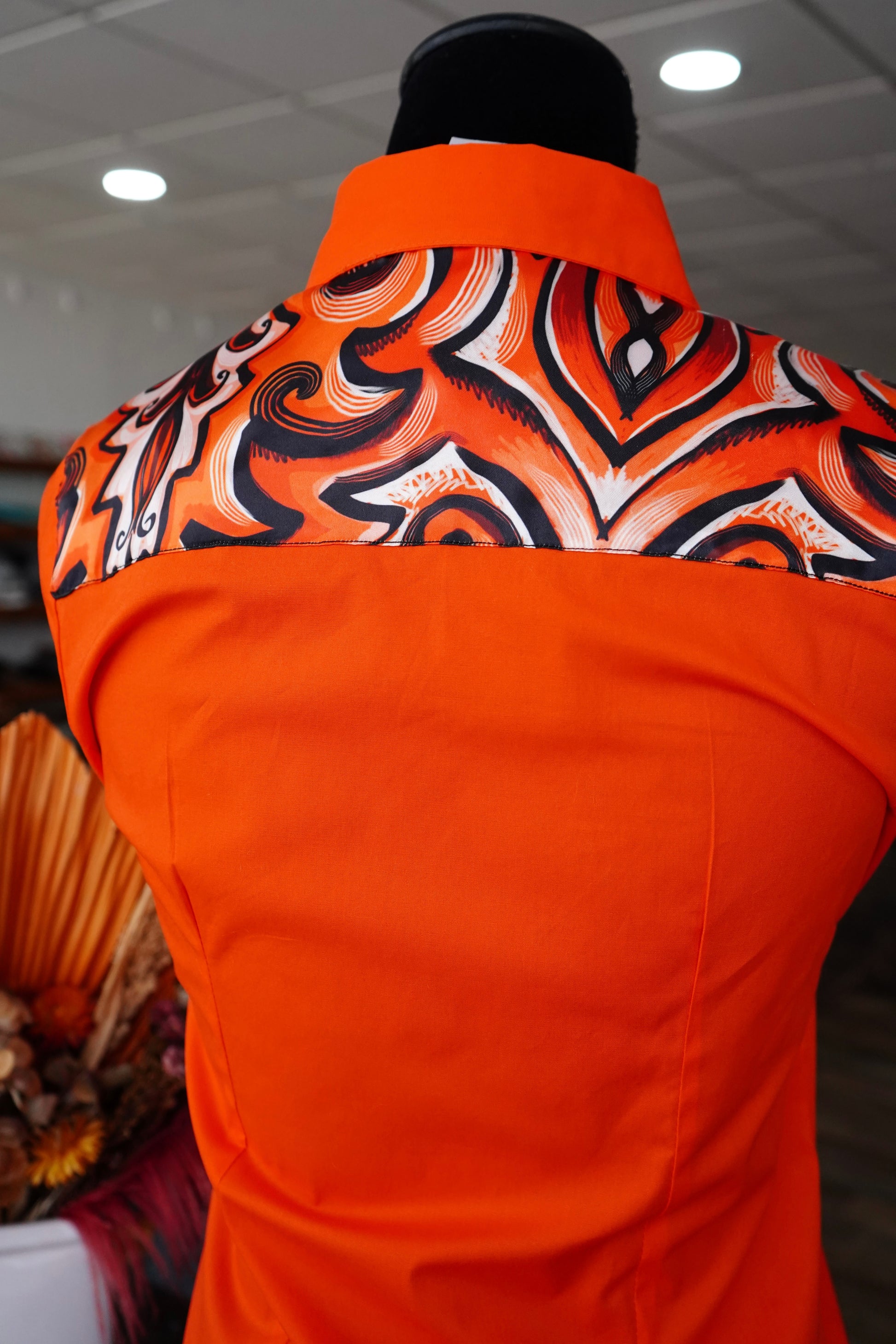 S - Orange Cotton w/ Pokes Damascus Button Down