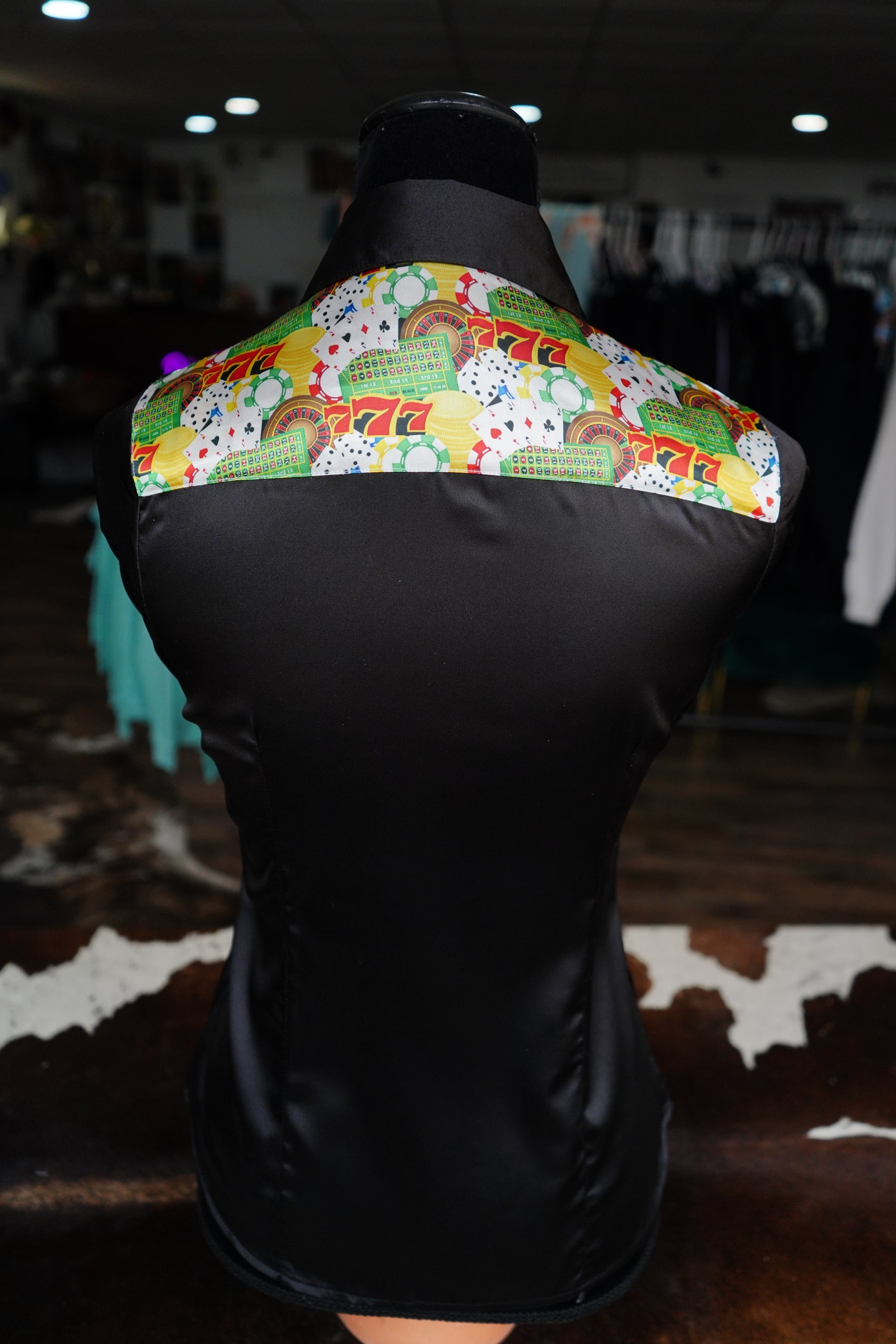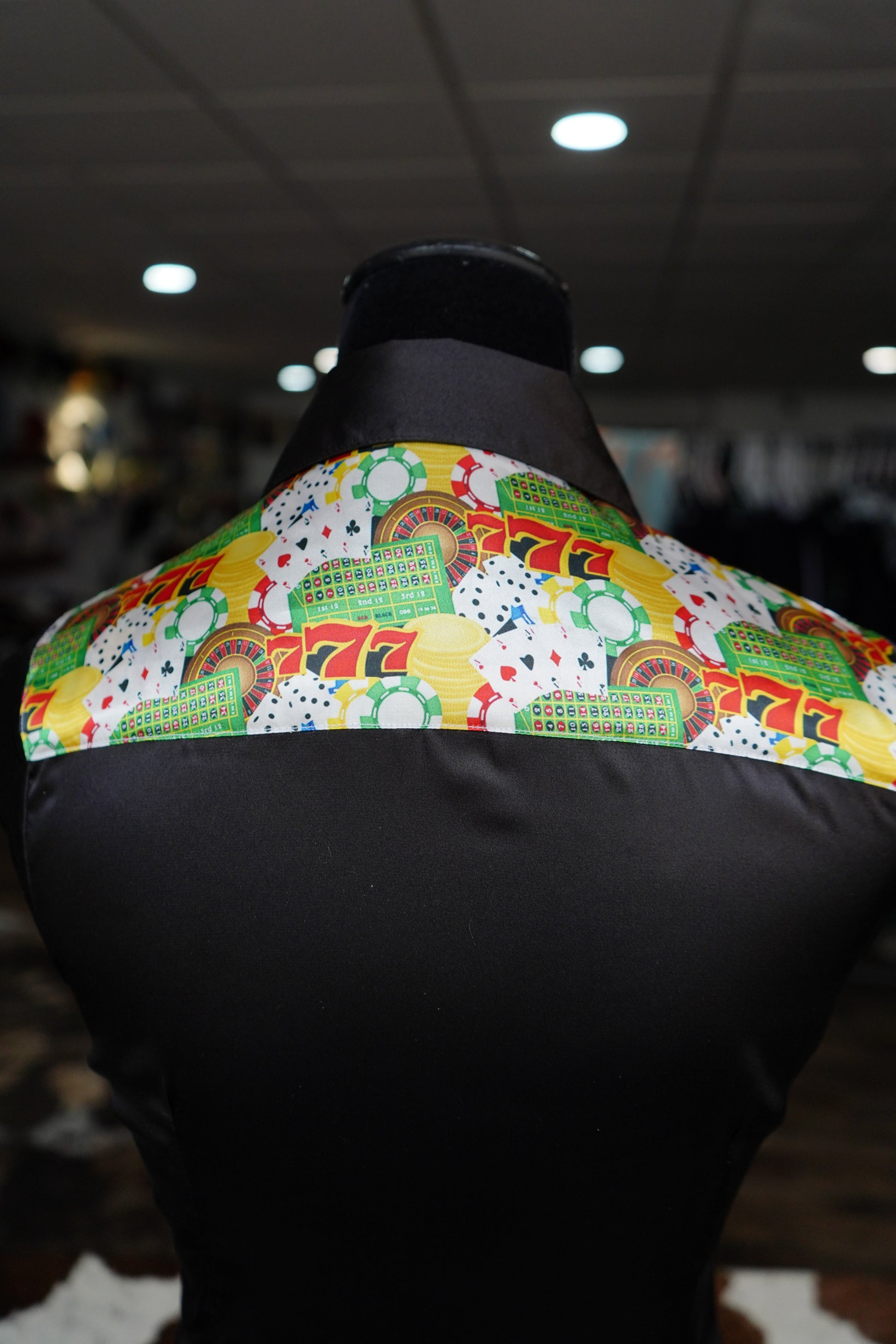S -Triple 7 on Black Satin Button Down