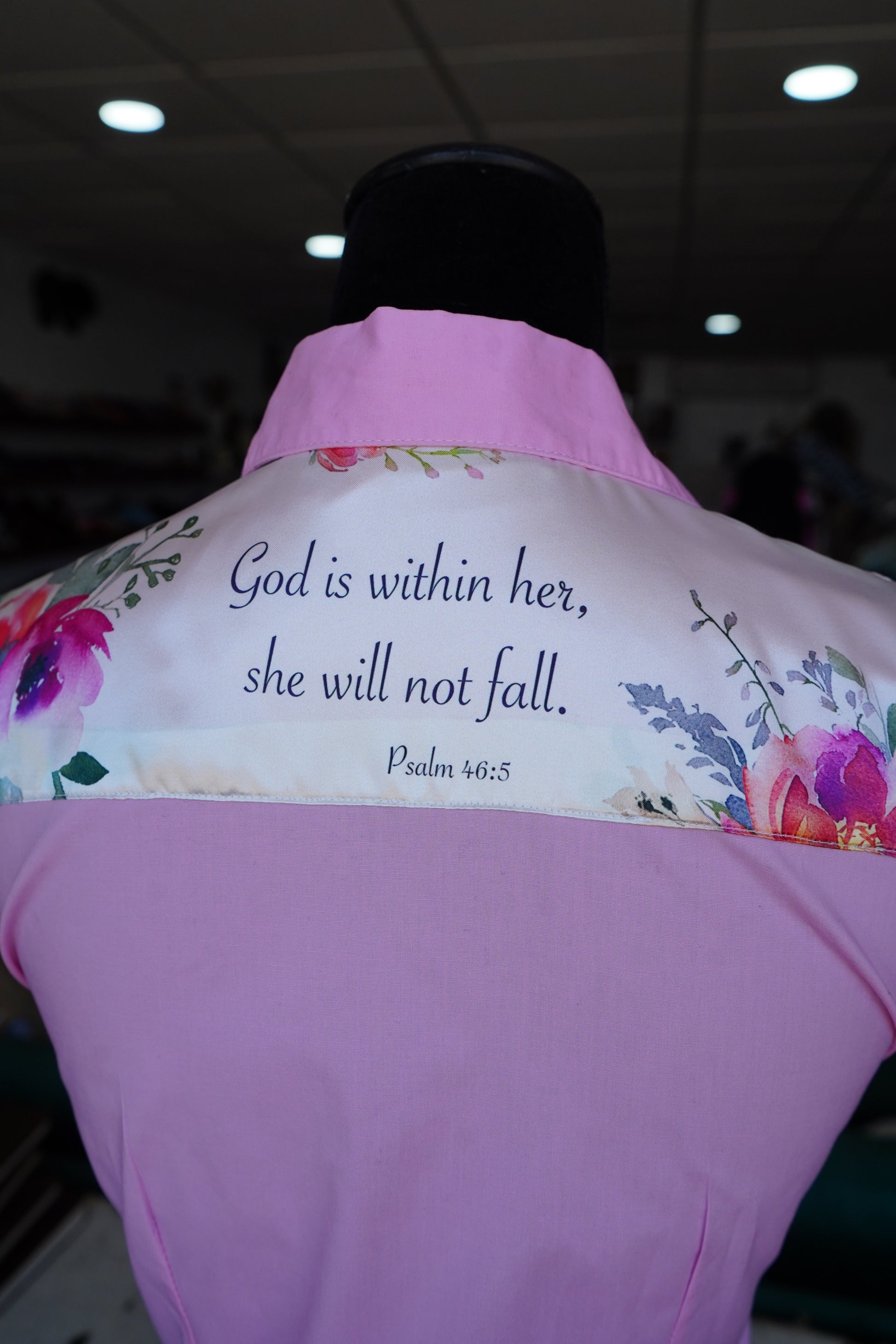 S - White Verses on Pink Cotton Button Down