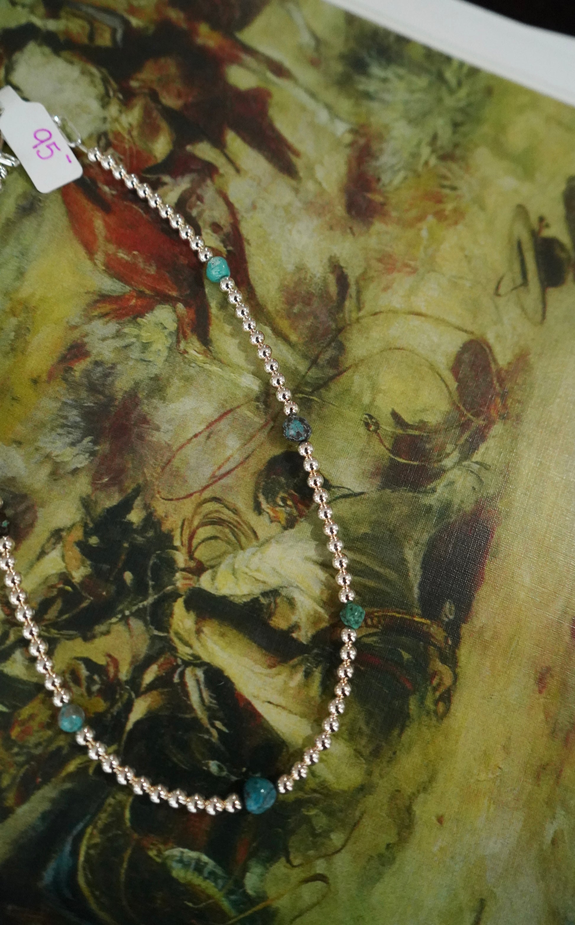 Shiny Sterling Silver Pearls w/ Turquoise Beads Necklace - 16”