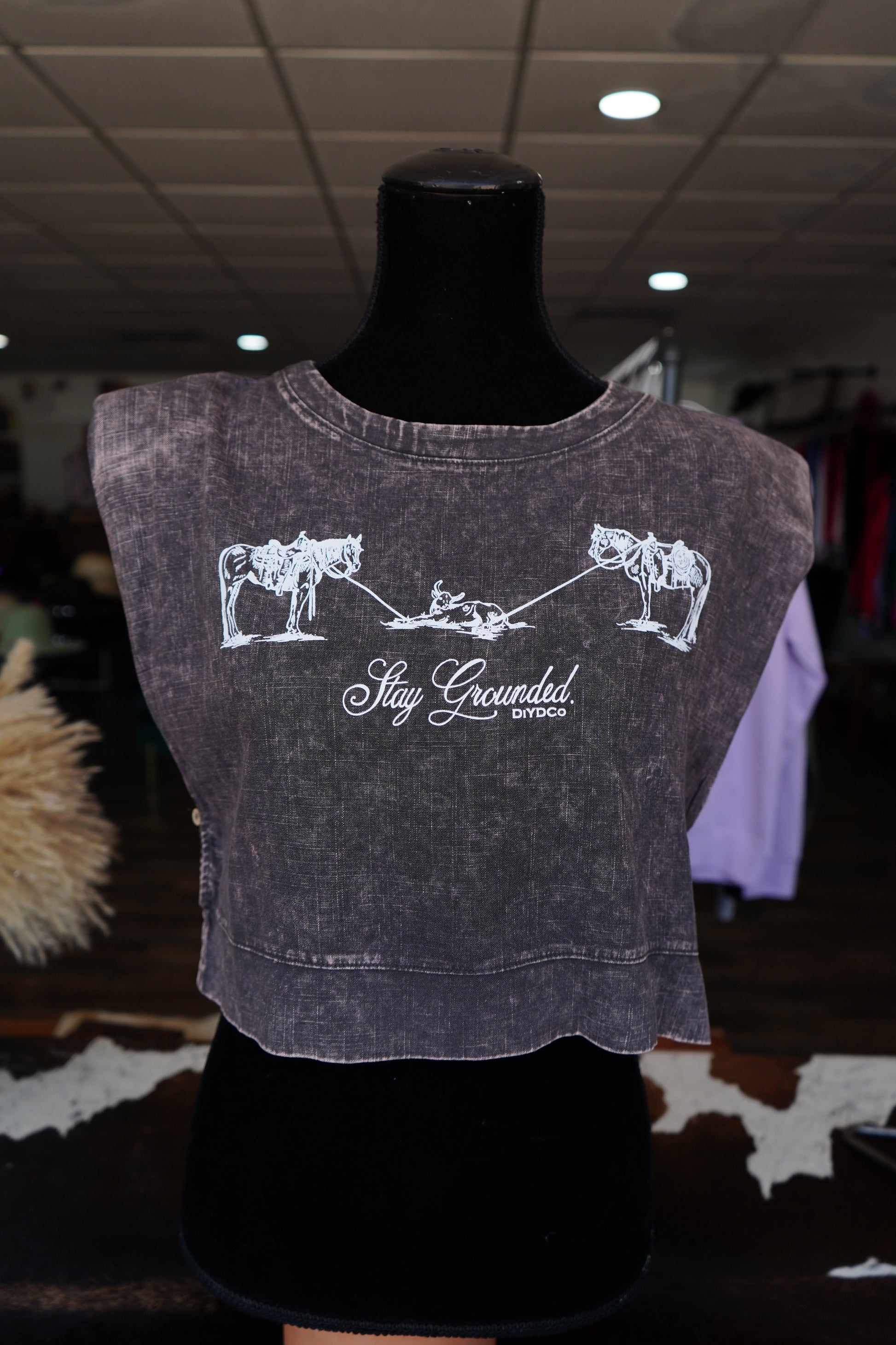 Stay Grounded Acid Washed Cropped Muscle Tank