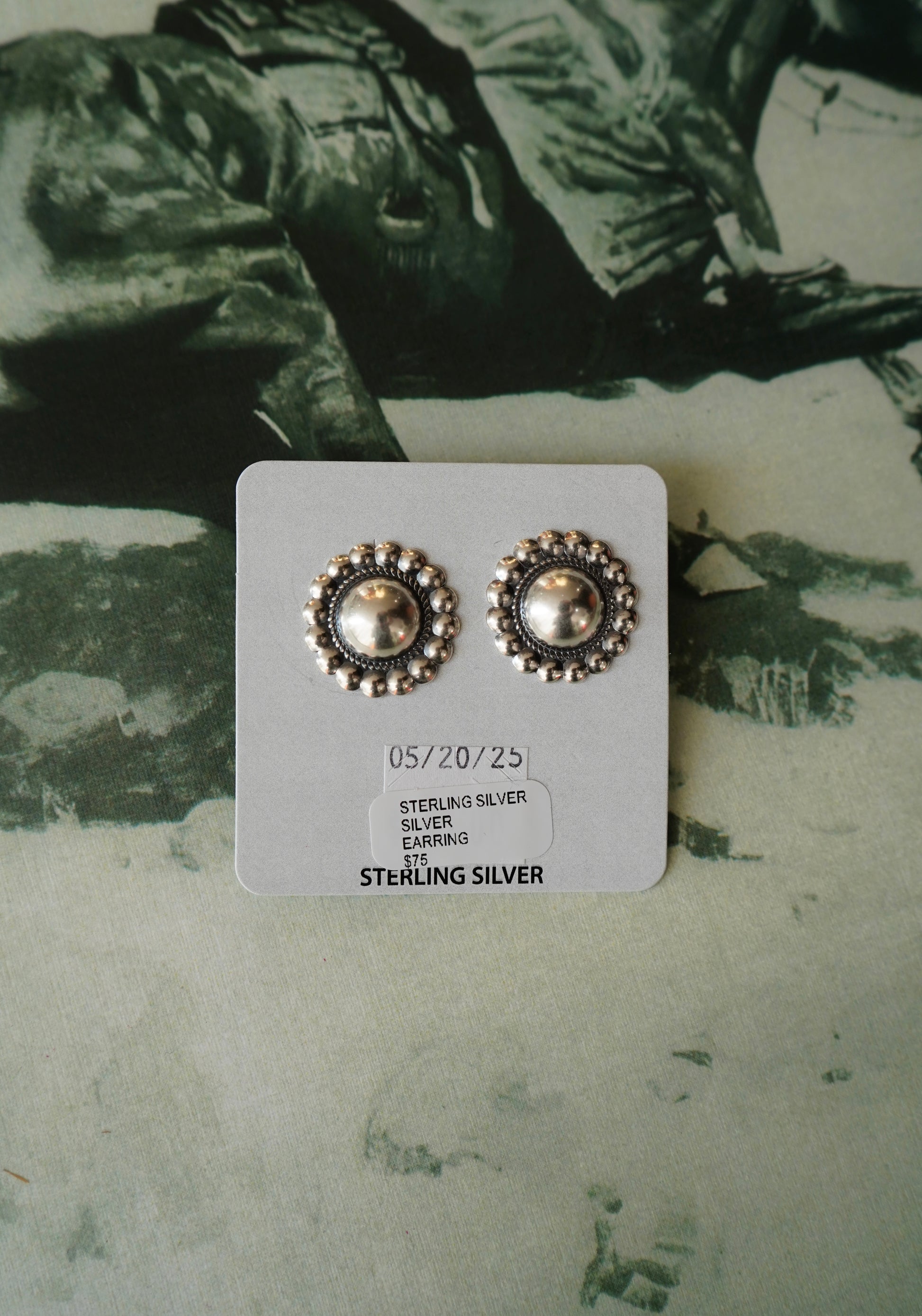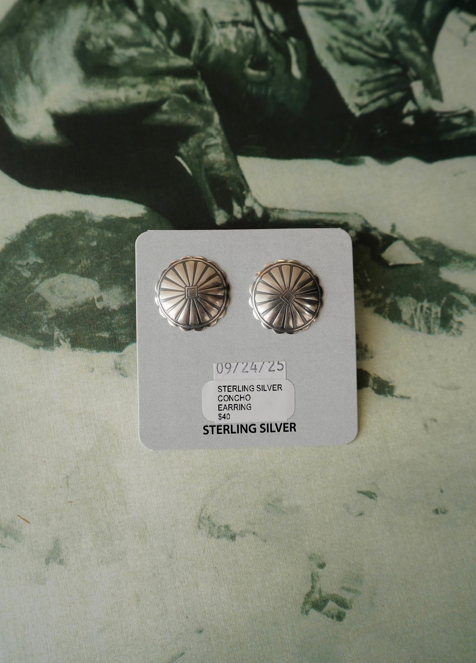 Sterling Silver Concho Stud Earrings