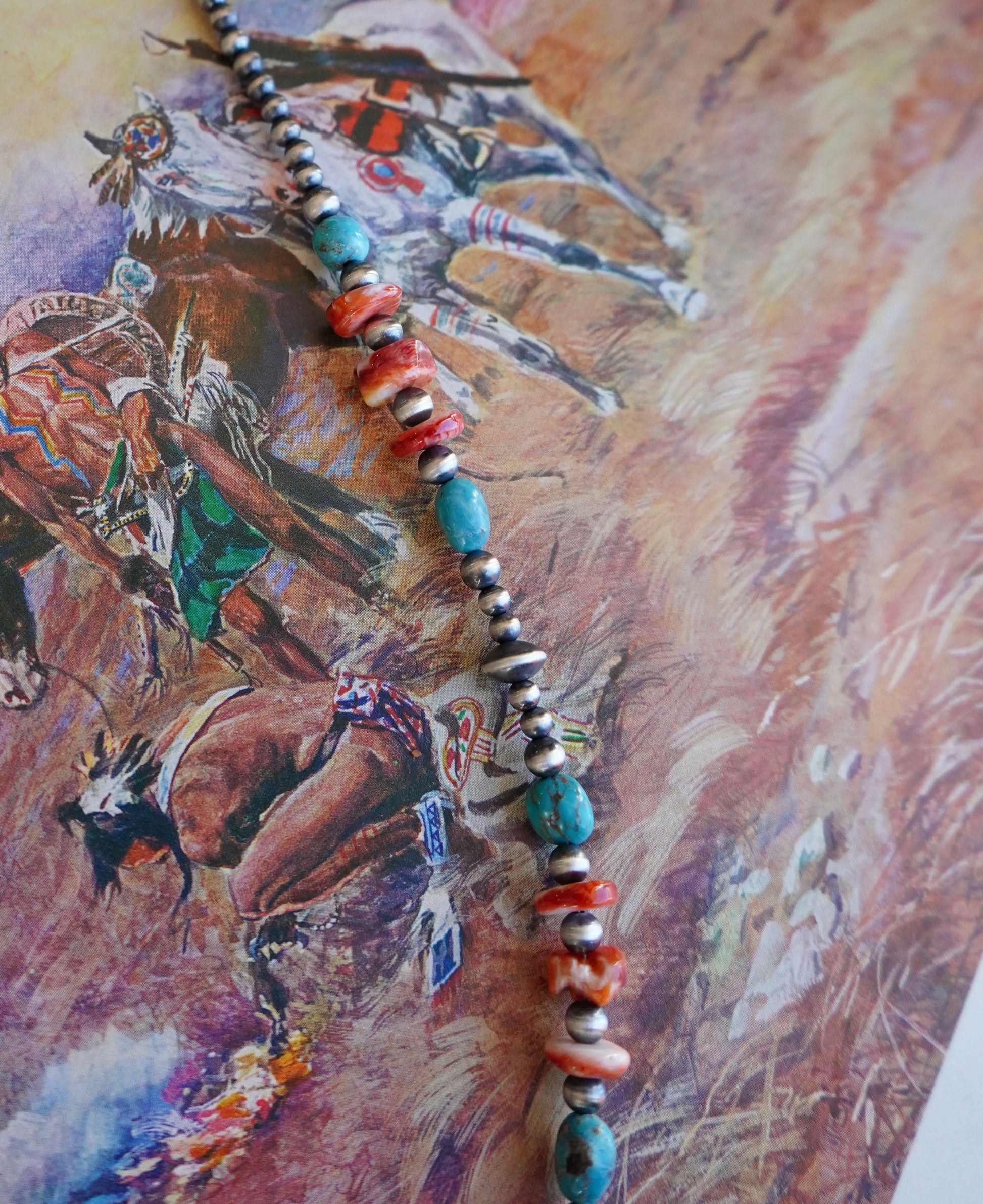 Sterling Silver Pearls w/ Orange Spiny & Turquoise Necklace - 22”
