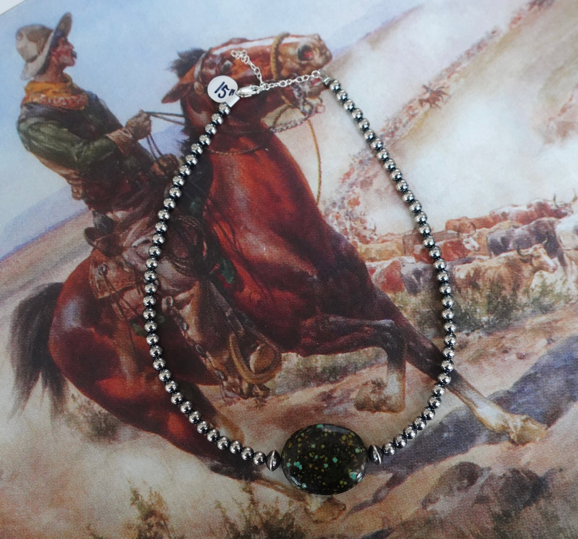 Sterling Silver Pearls w/ Round Turquoise Nugget Necklace - 15”