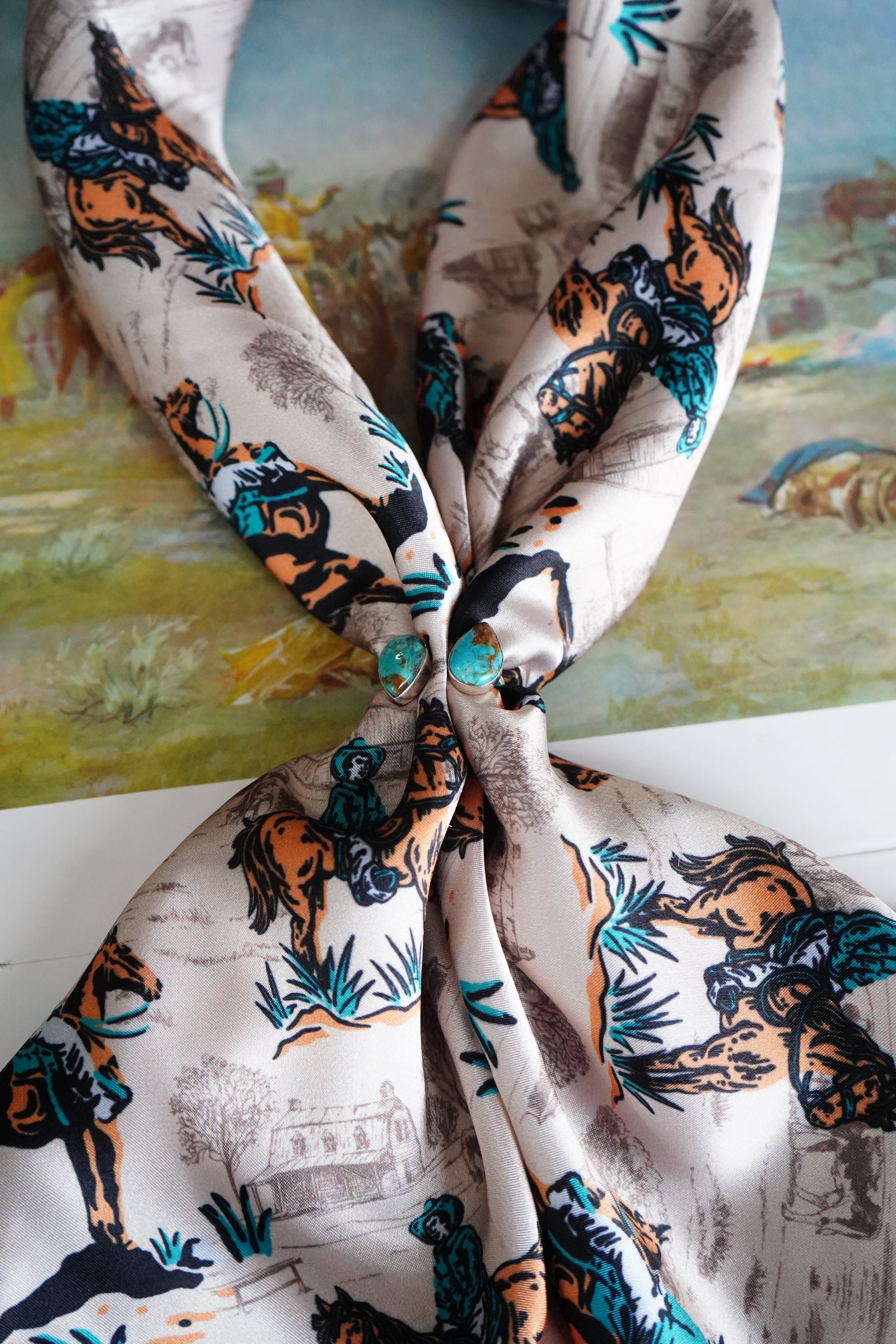 Tan & Emerald Cowboy Scene Wild Rag