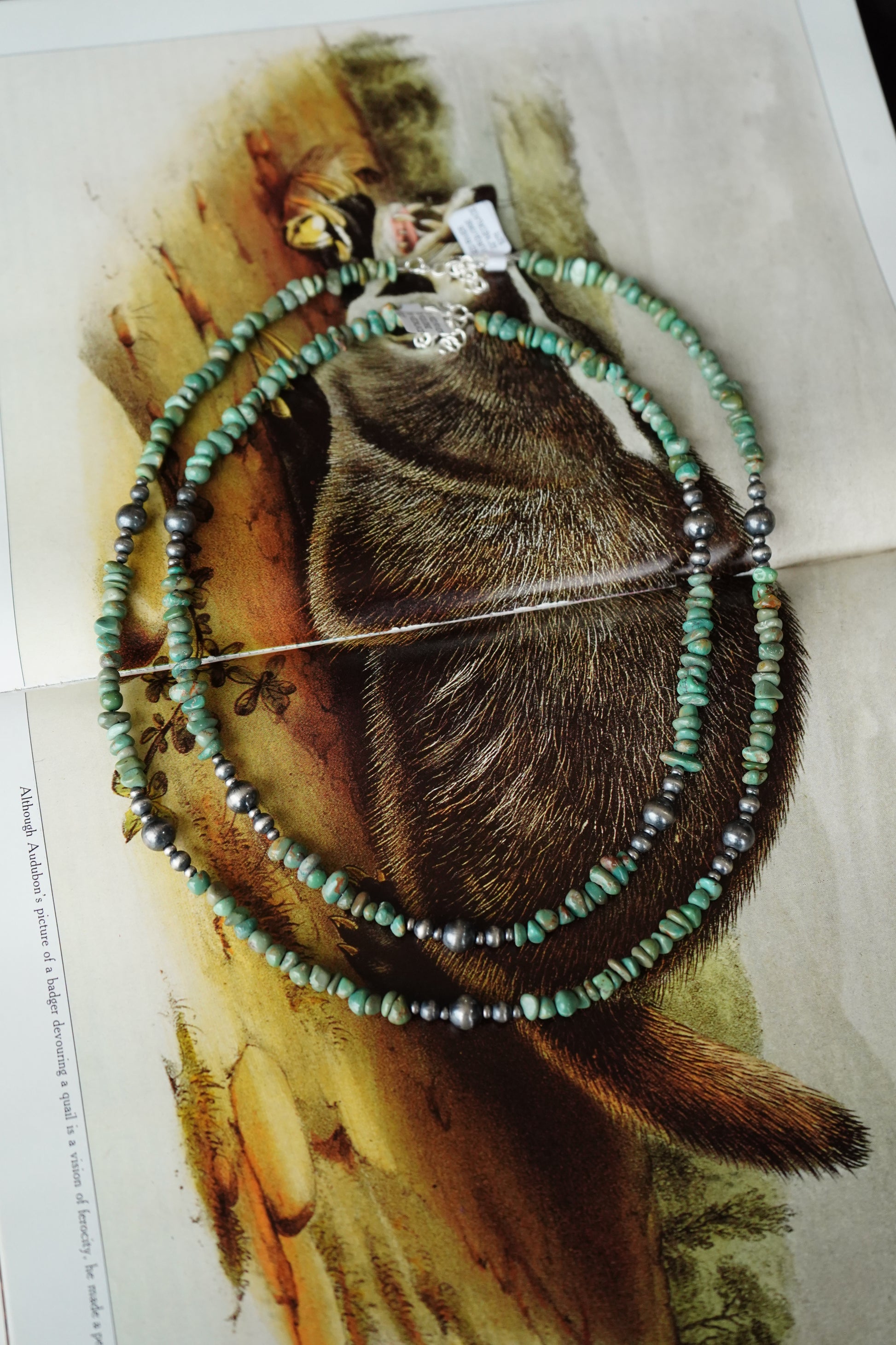 Turquoise Chip w/ Sterling Silver Pearls Necklaces