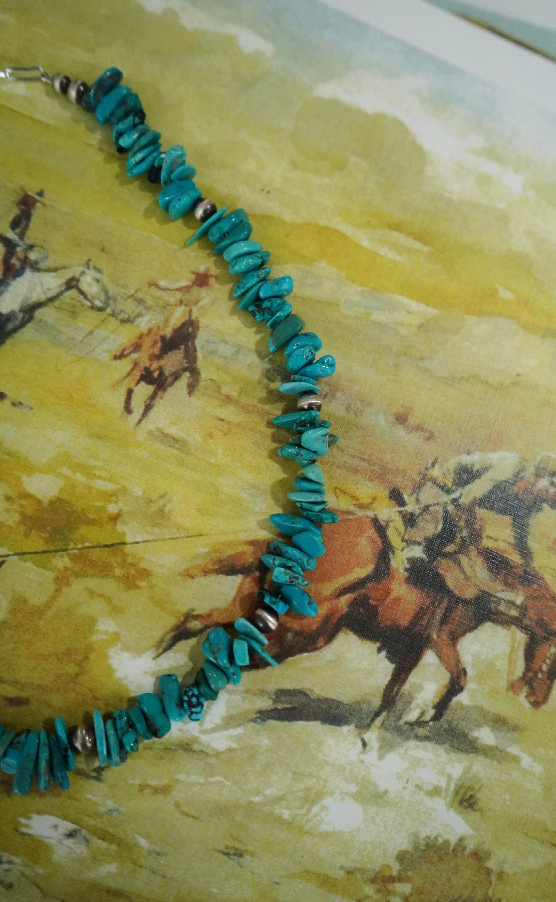 Turquoise Chip w/ Sterling Silver Pearls Necklace