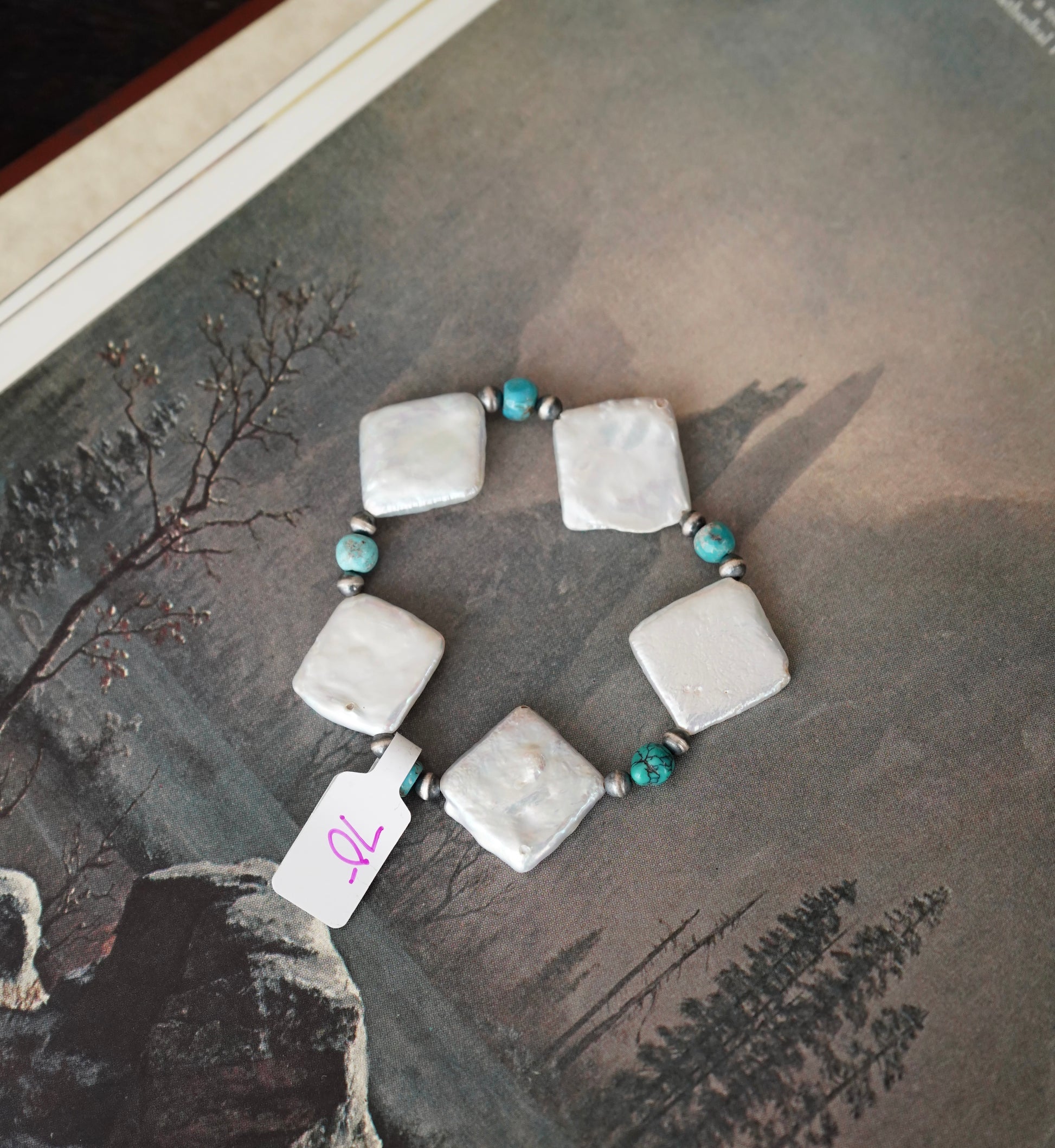 Turquoise & Mother of Pearl Stretchy Bracelet