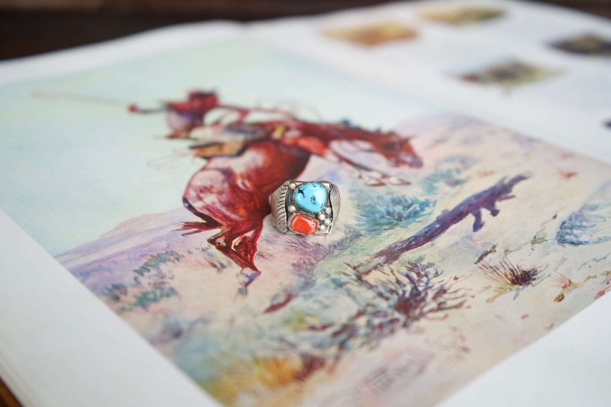 Turquoise, Sterling Silver & Red Coral Men’s Rings - Sz 9-13.5