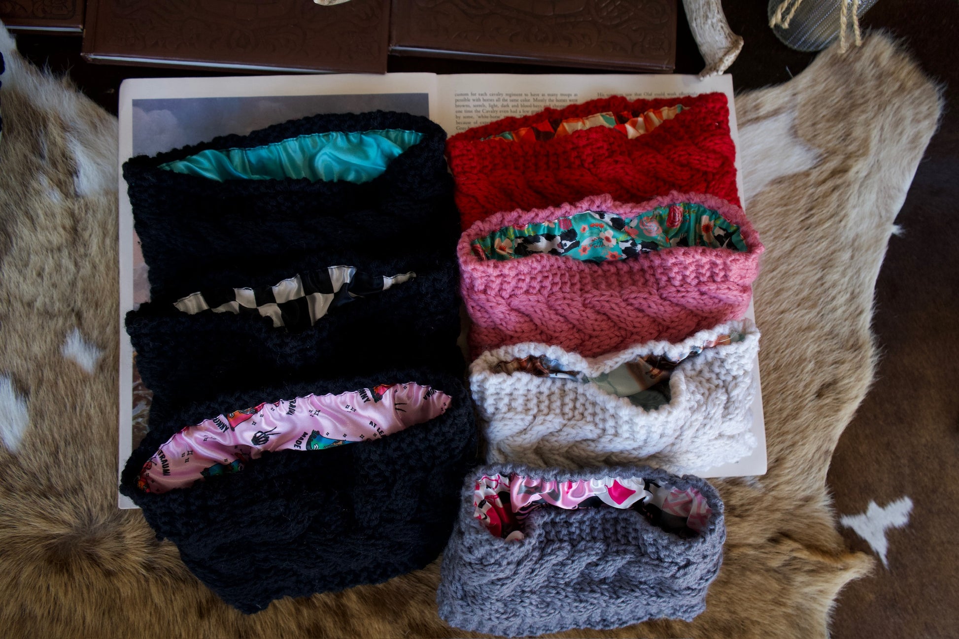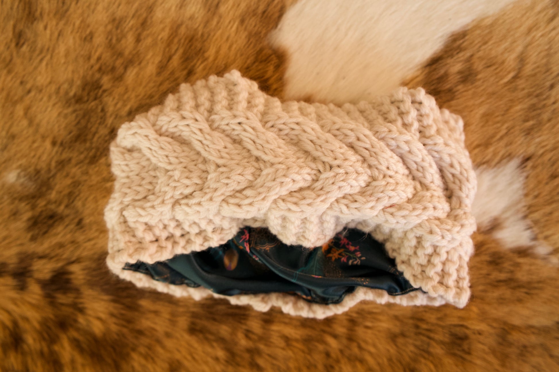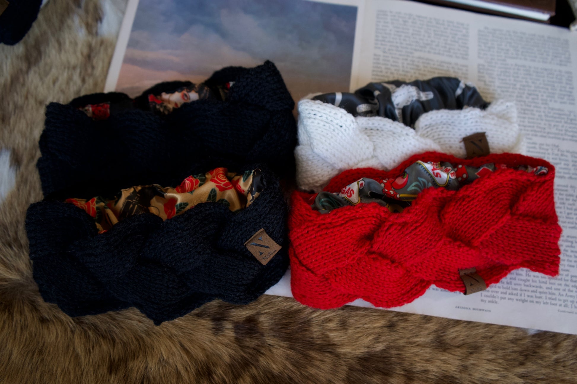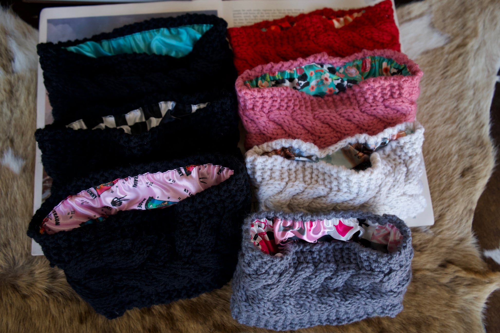 Hand sewn in Stillwater, OK. Warmer than normal winter headbands, and better for your hair and skin!