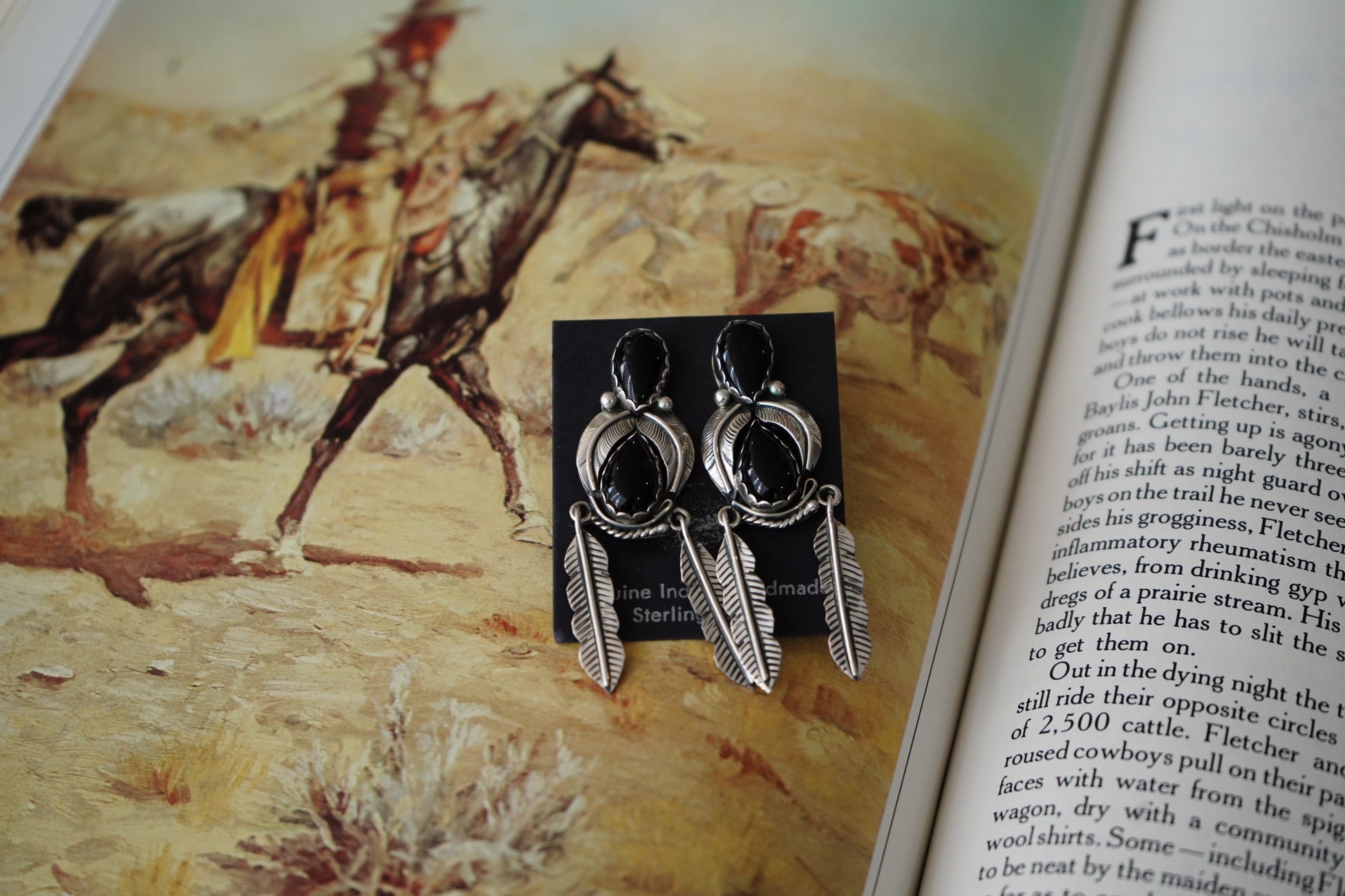 Vintage 2 Stone Black Onyx w/ Dangly Feathers