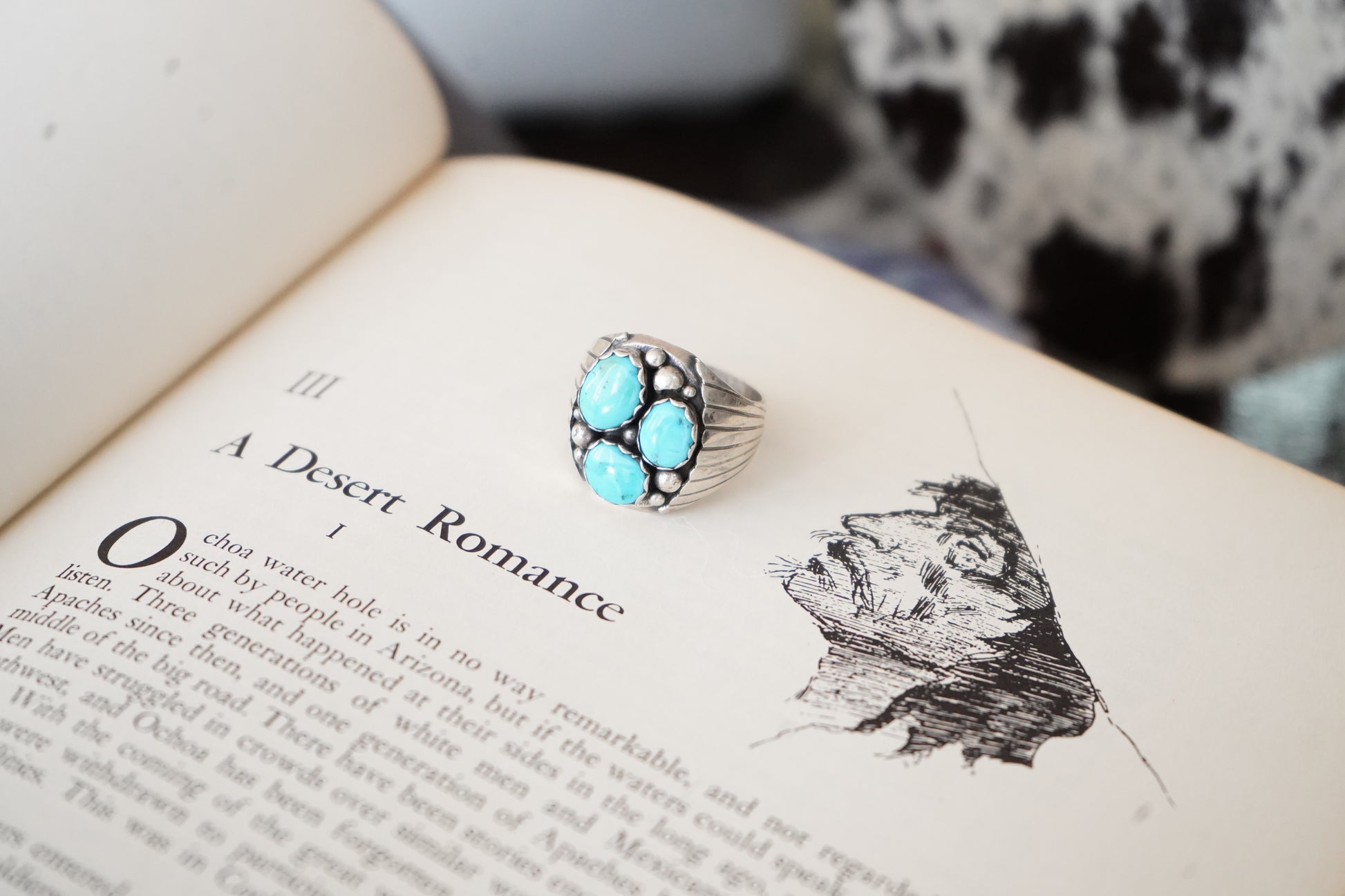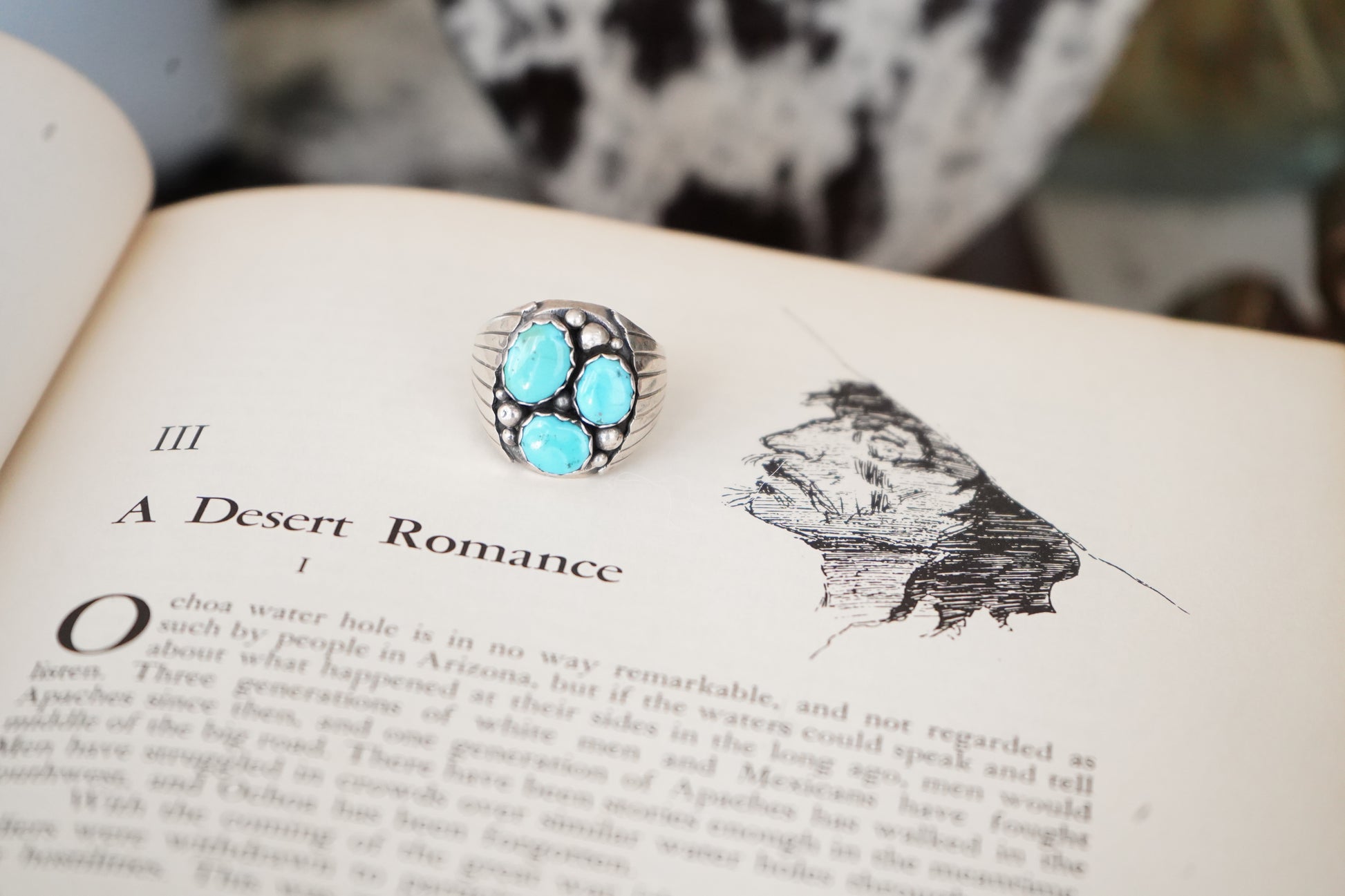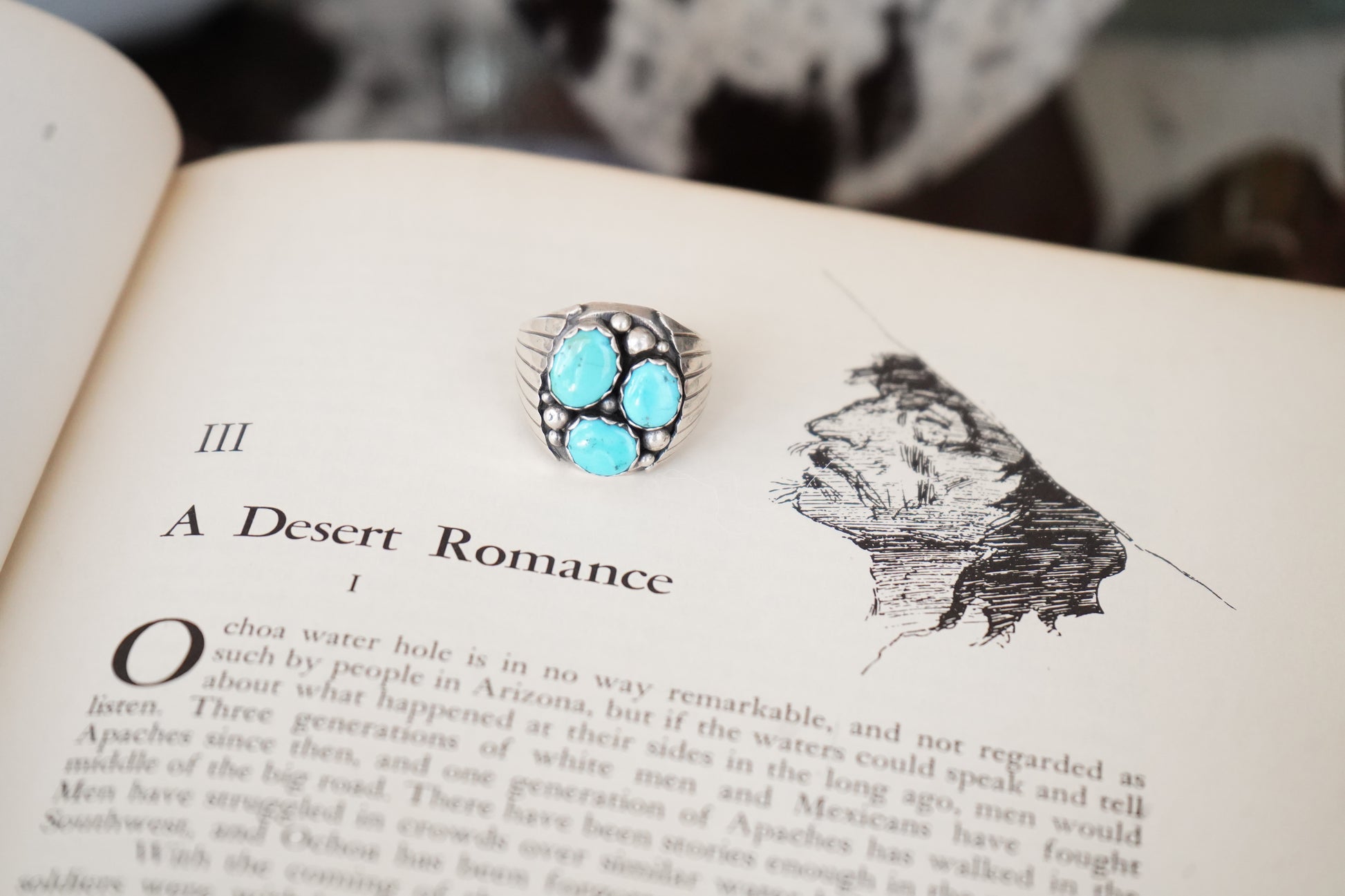 Vintage 3 Stone Turquoise w/ Silver Beads Mens Ring - Sz 11