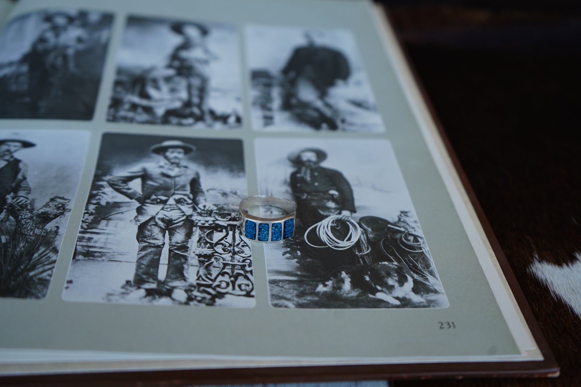 Vintage Crushed Turquoise Inlay Ring - Sz 9