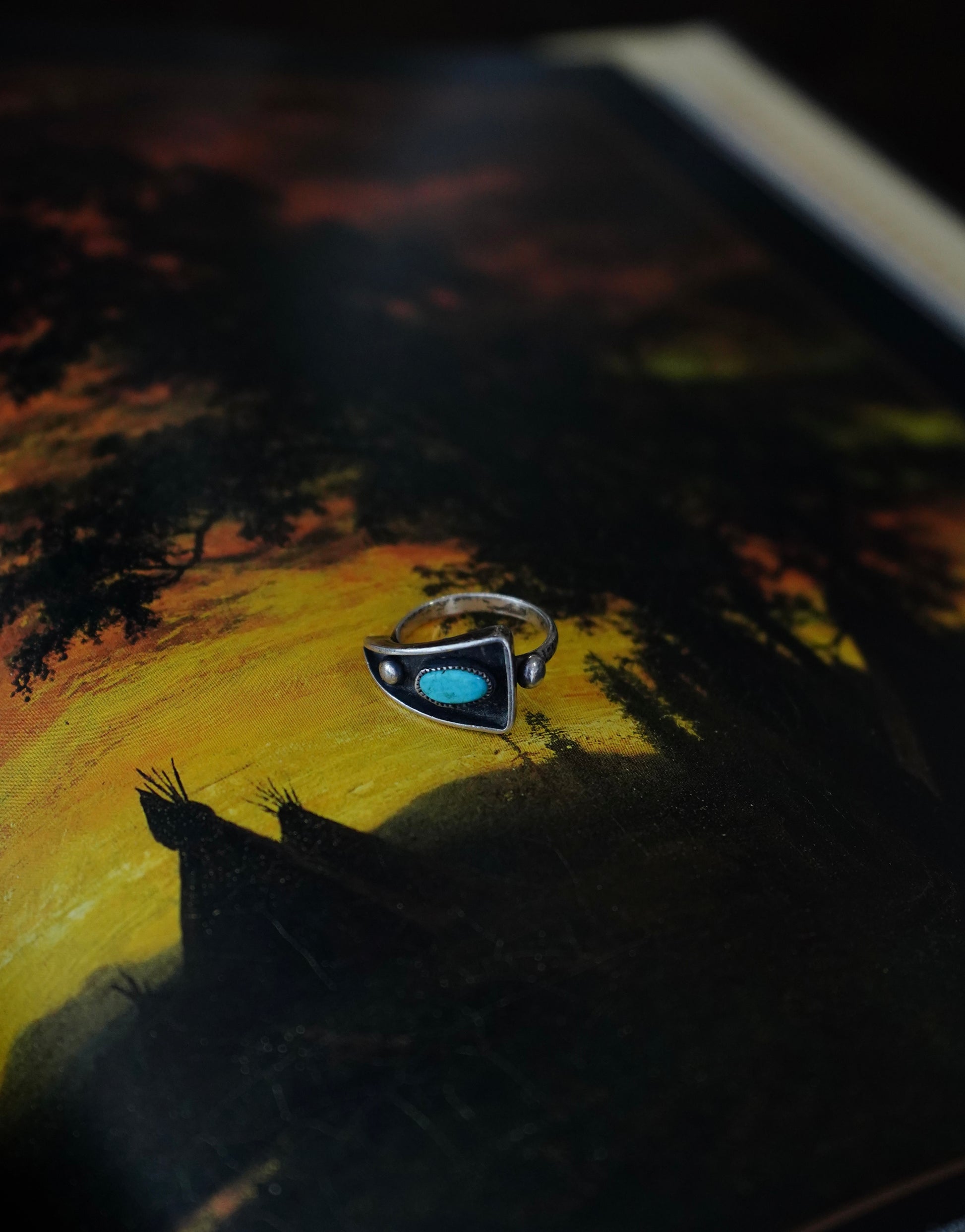 Vintage Dainty Turquoise Shadow Box Ring - Sz 6