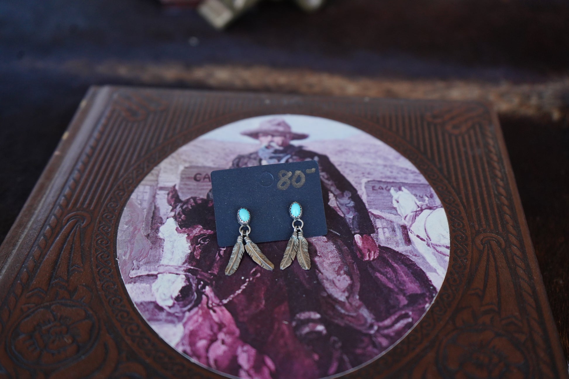 Vintage Dainty Turquoise Stud Earrings w/ Feather Dangles