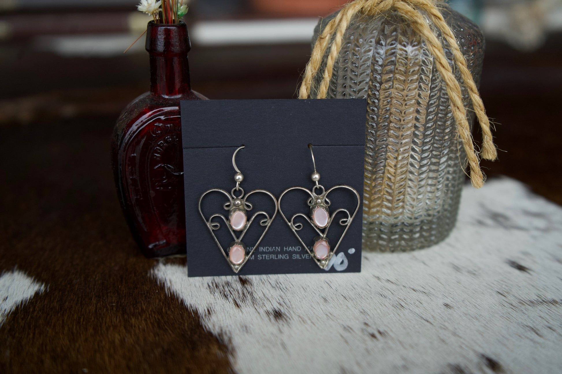 Vintage Fishhook Earrings Mother of Pearl Hearts