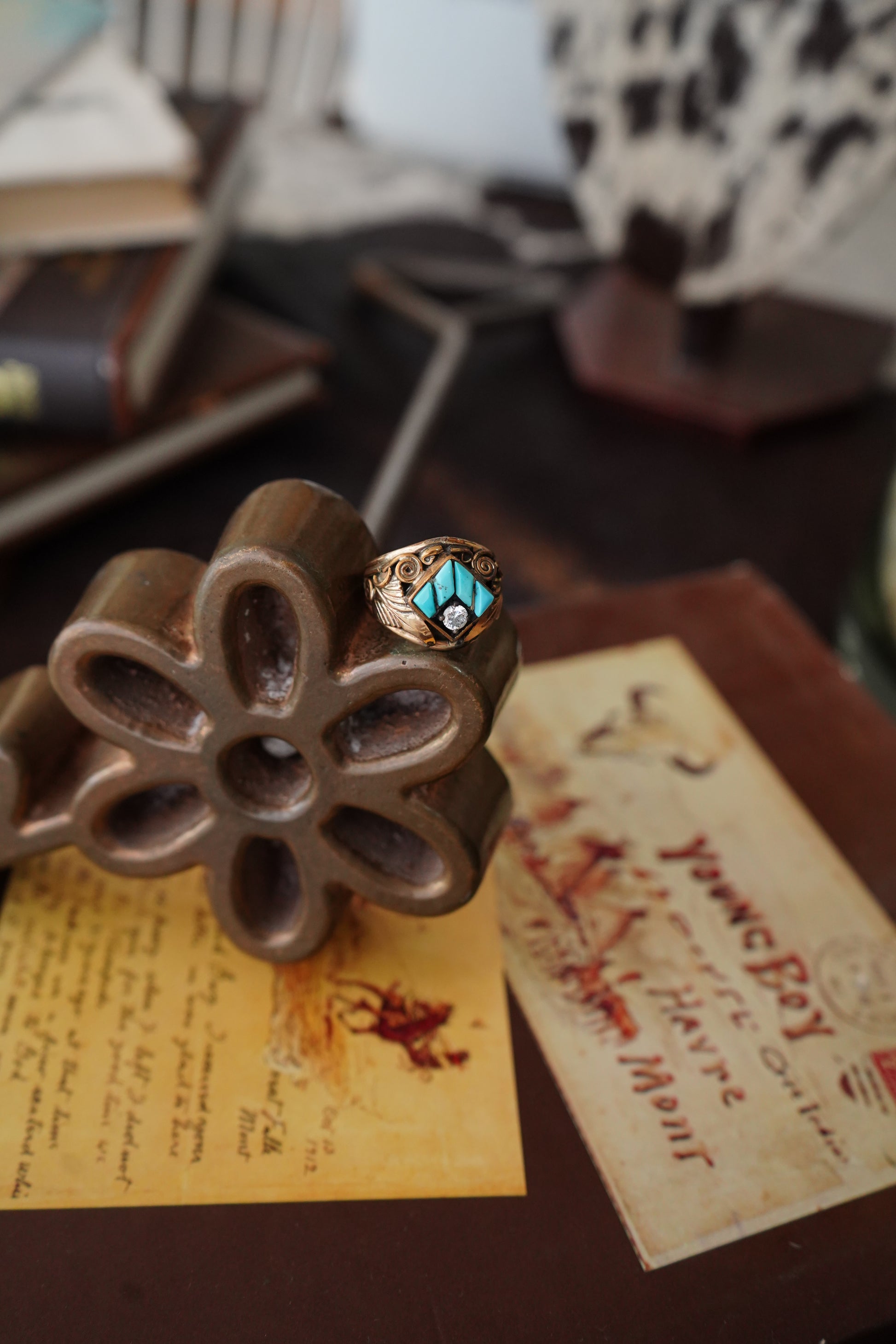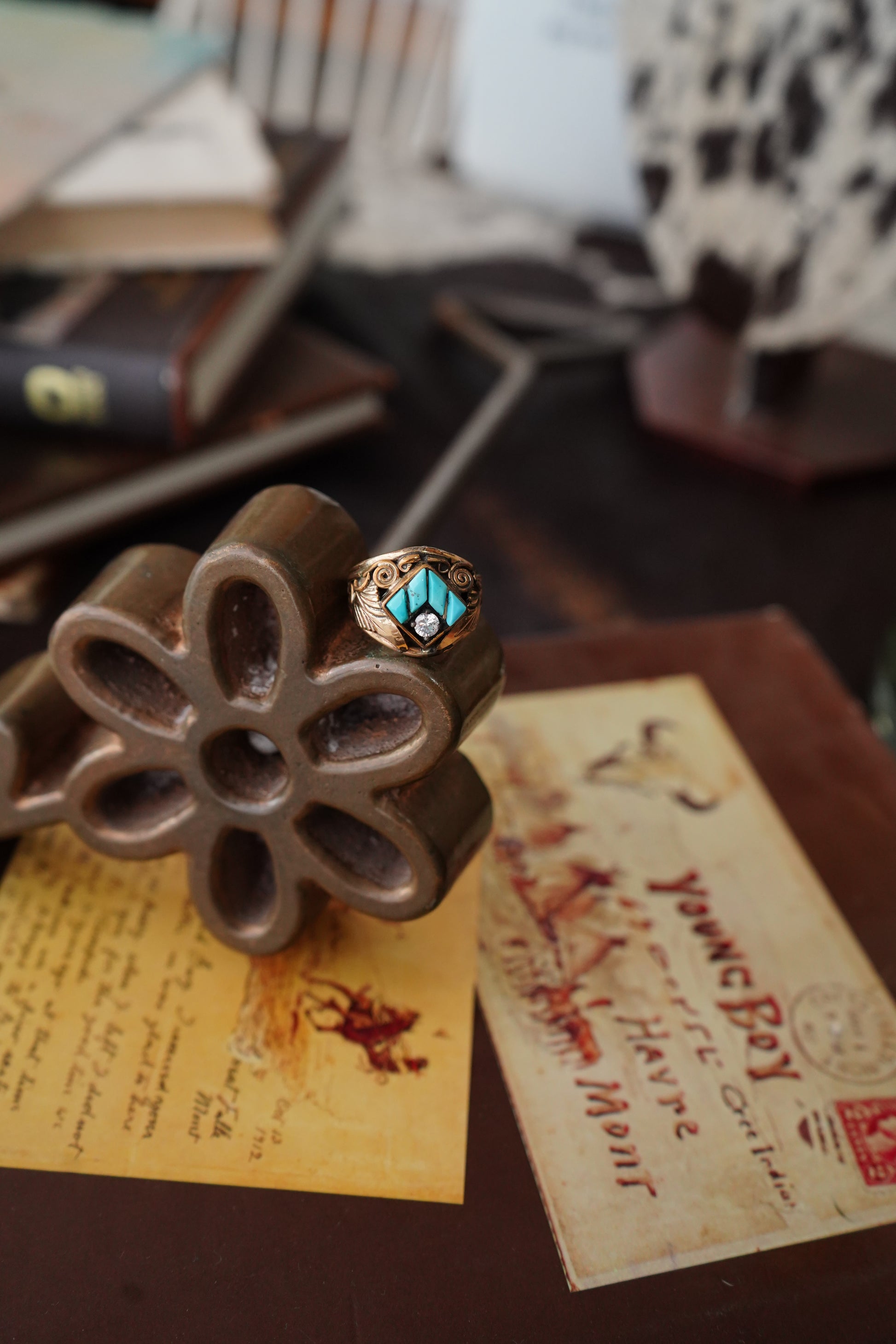Vintage Gold & Turquoise w/ CZ Ring - Sz 8.75