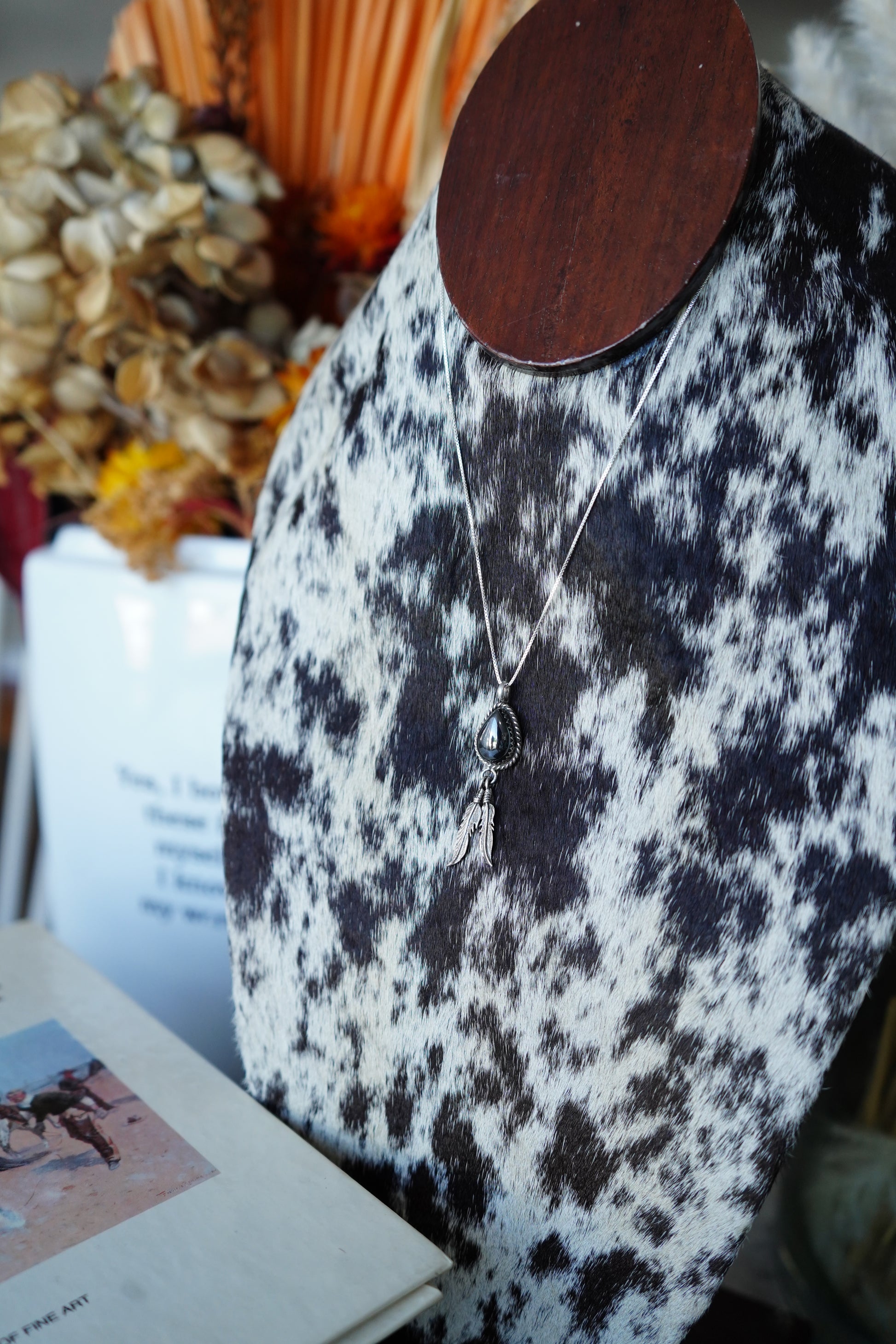 Vintage Hematite Feather Dangle Pendant