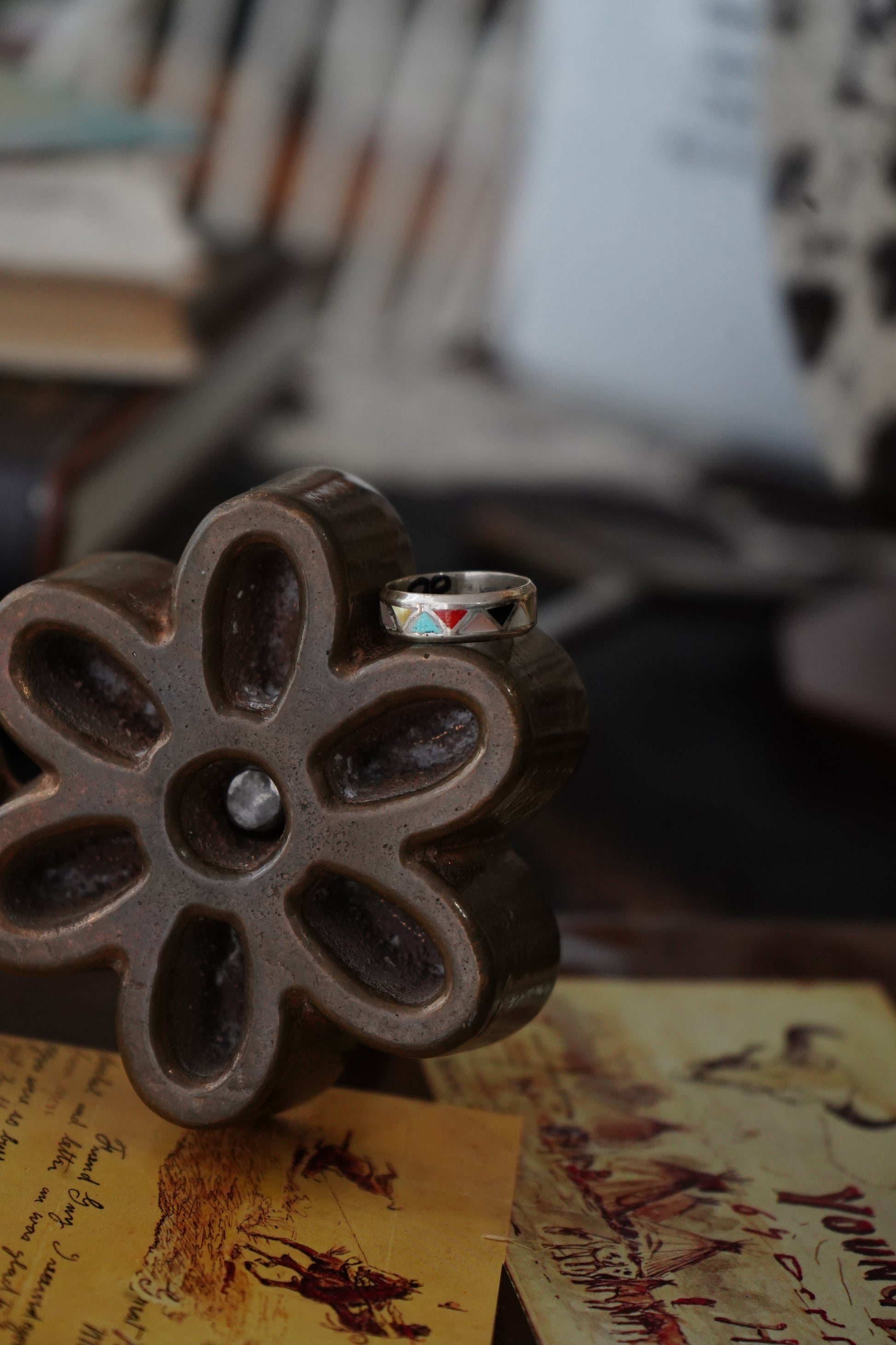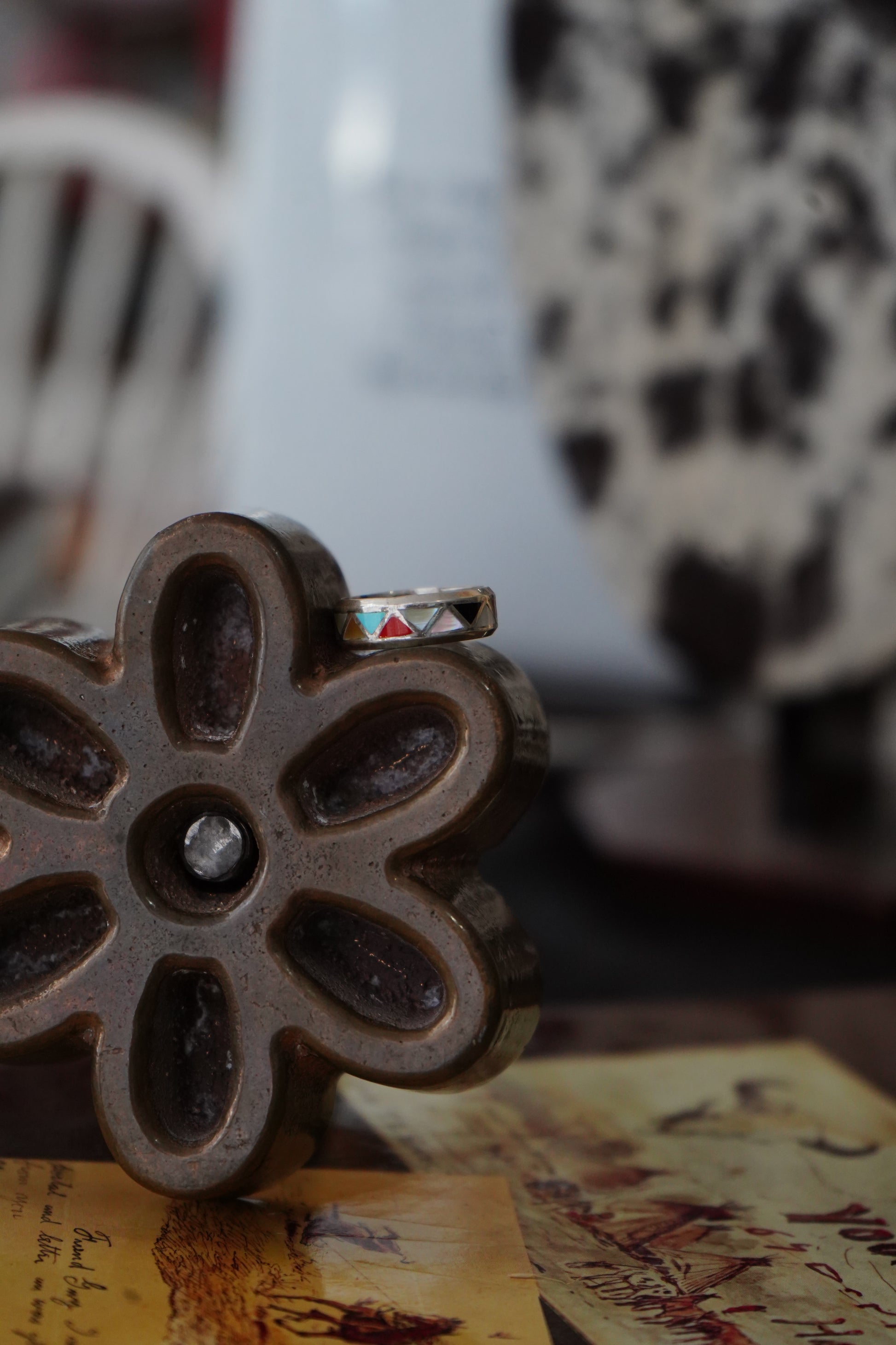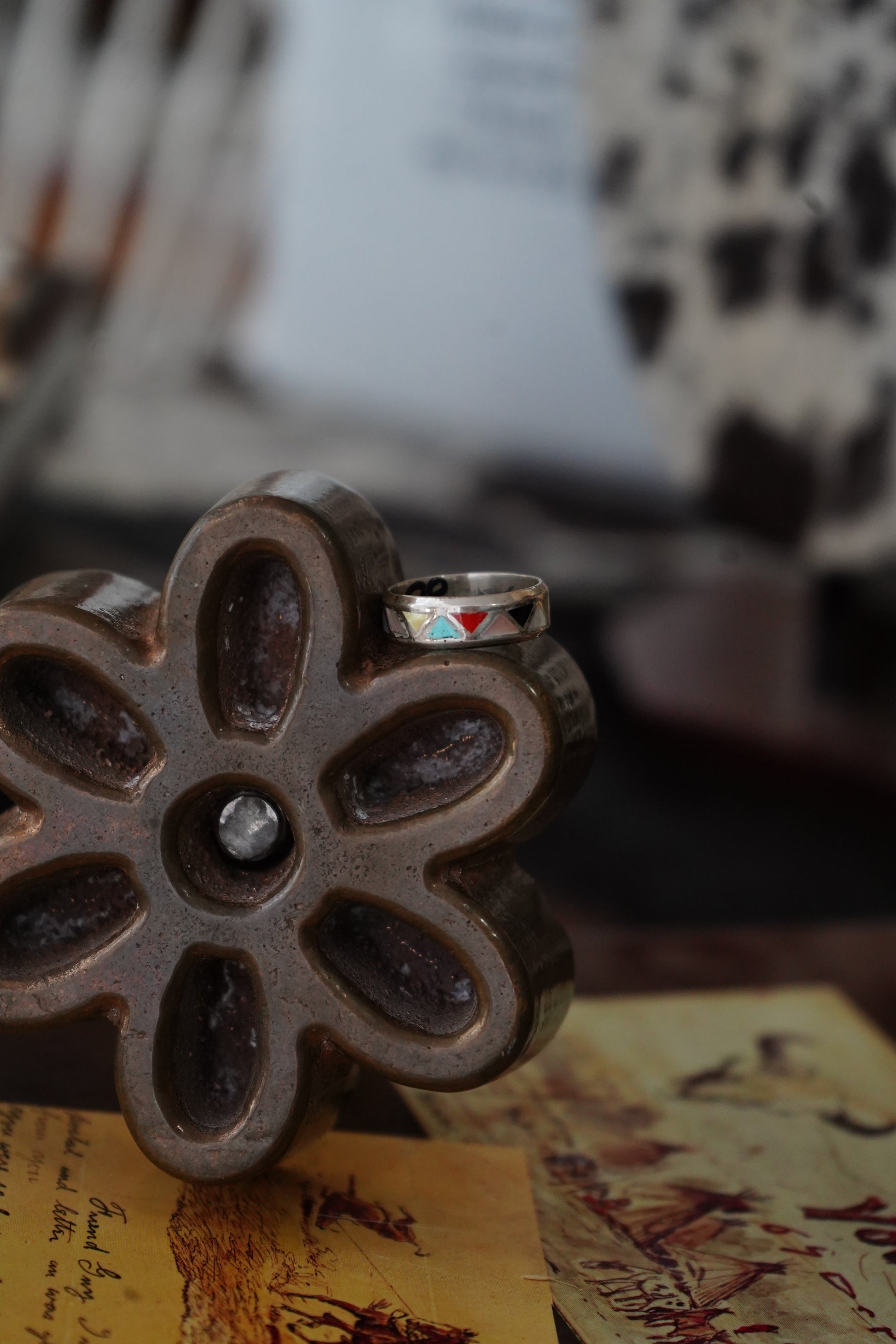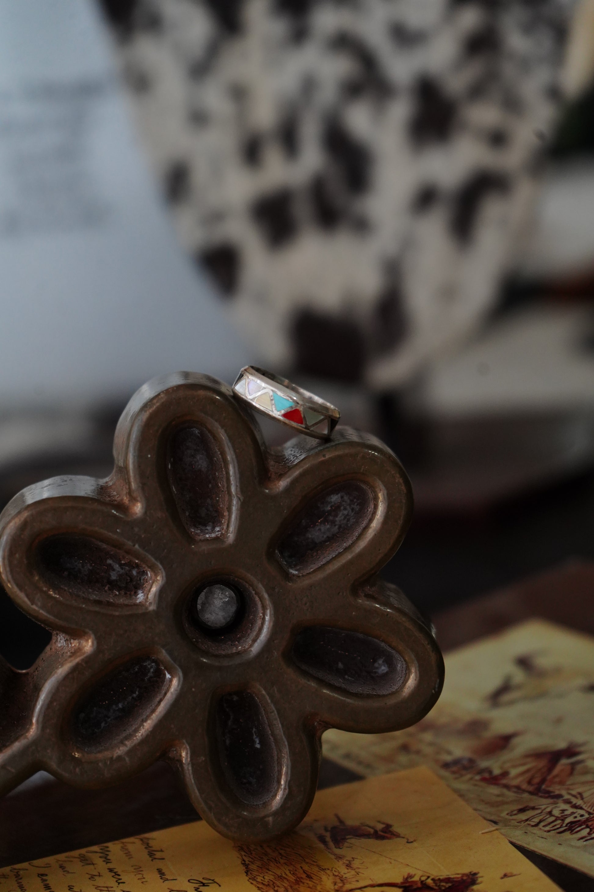 Vintage Multi Stone Inlay Band Ring - Sz 7.25