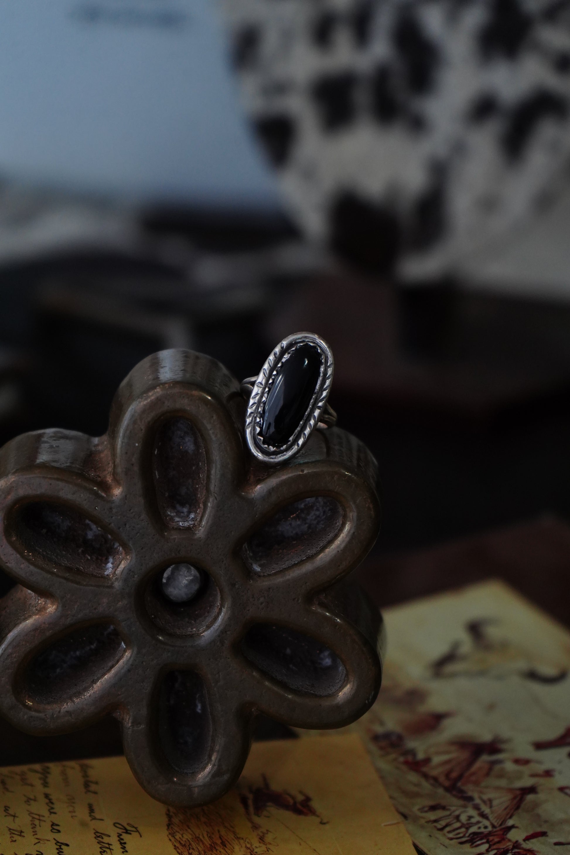 Vintage Oval Black Onyx Ring - Sz 6.5