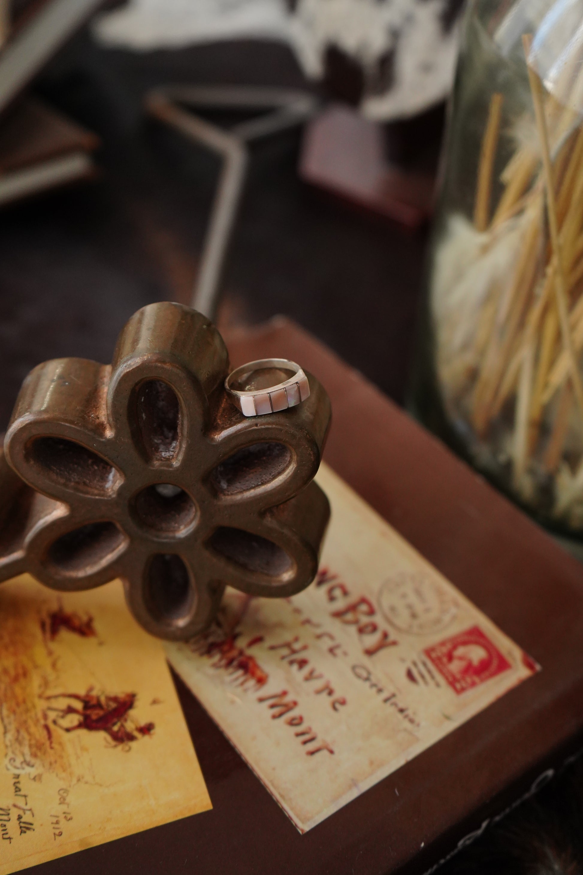 Vintage Pearl Inlay Bar Ring - Sz 6.5