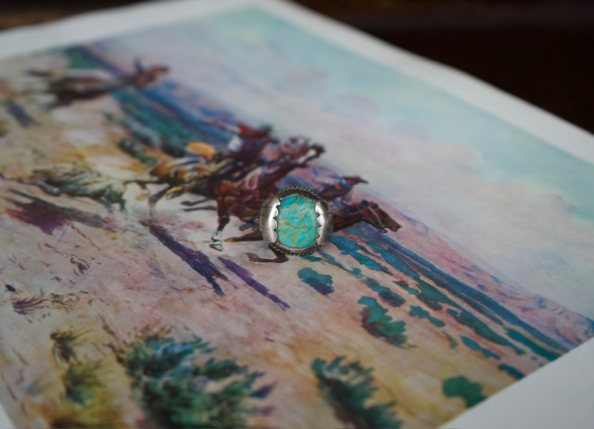 Vintage Round Turquoise Statement Ring - Size 7.5