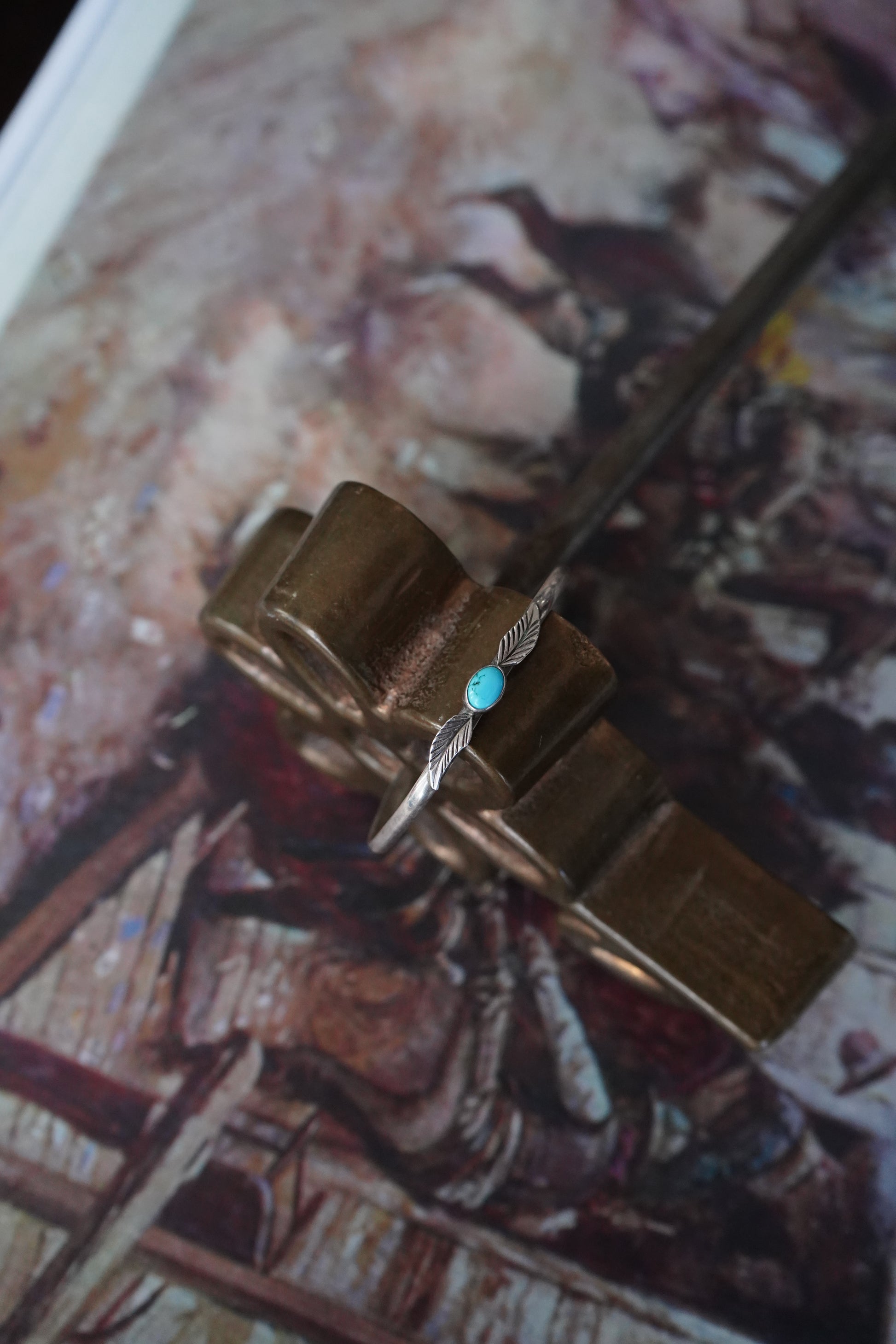 Vintage Single Stone w/ Feathers Cuff