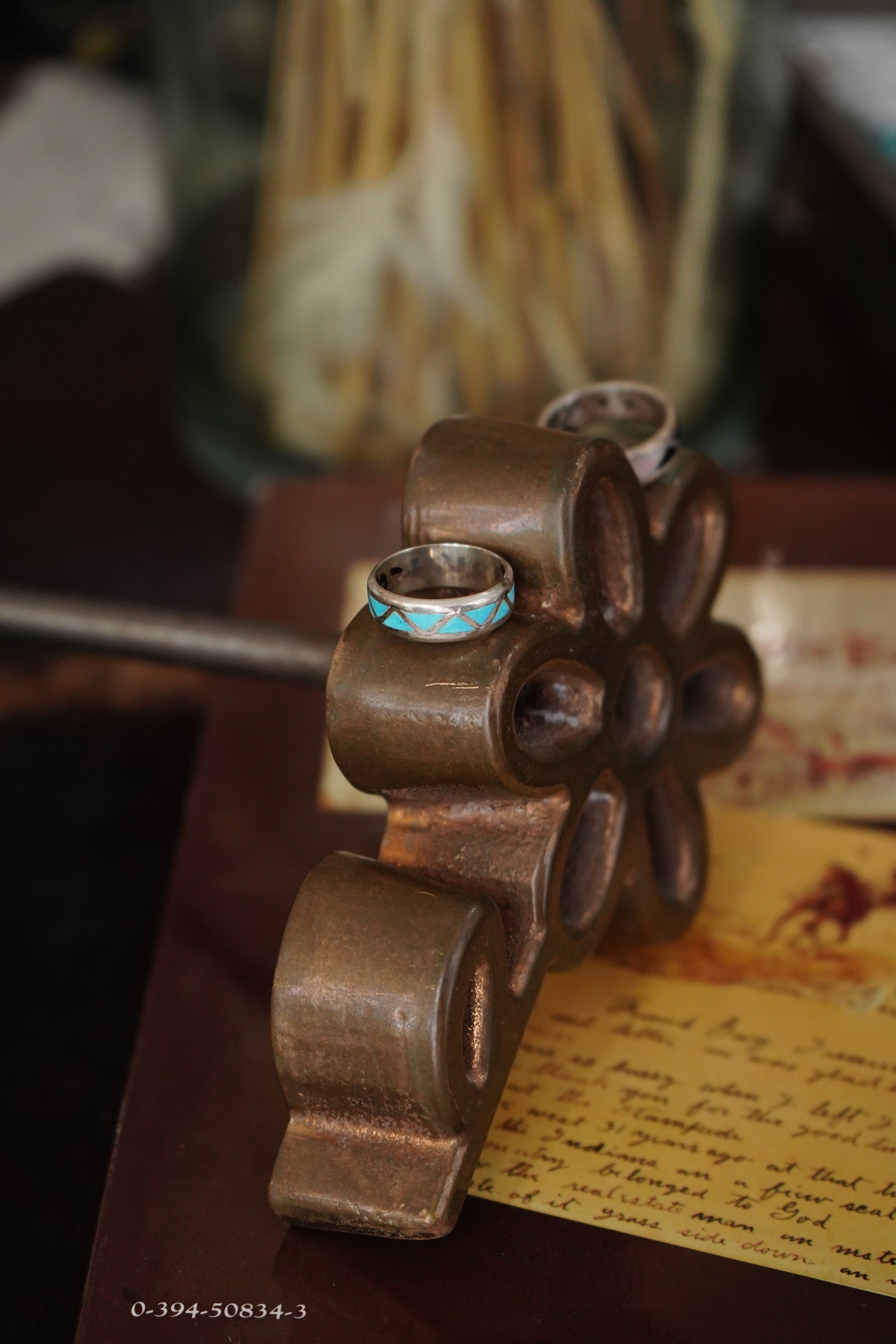 Vintage Turquoise Band Inlay Ring - Sz 6.75