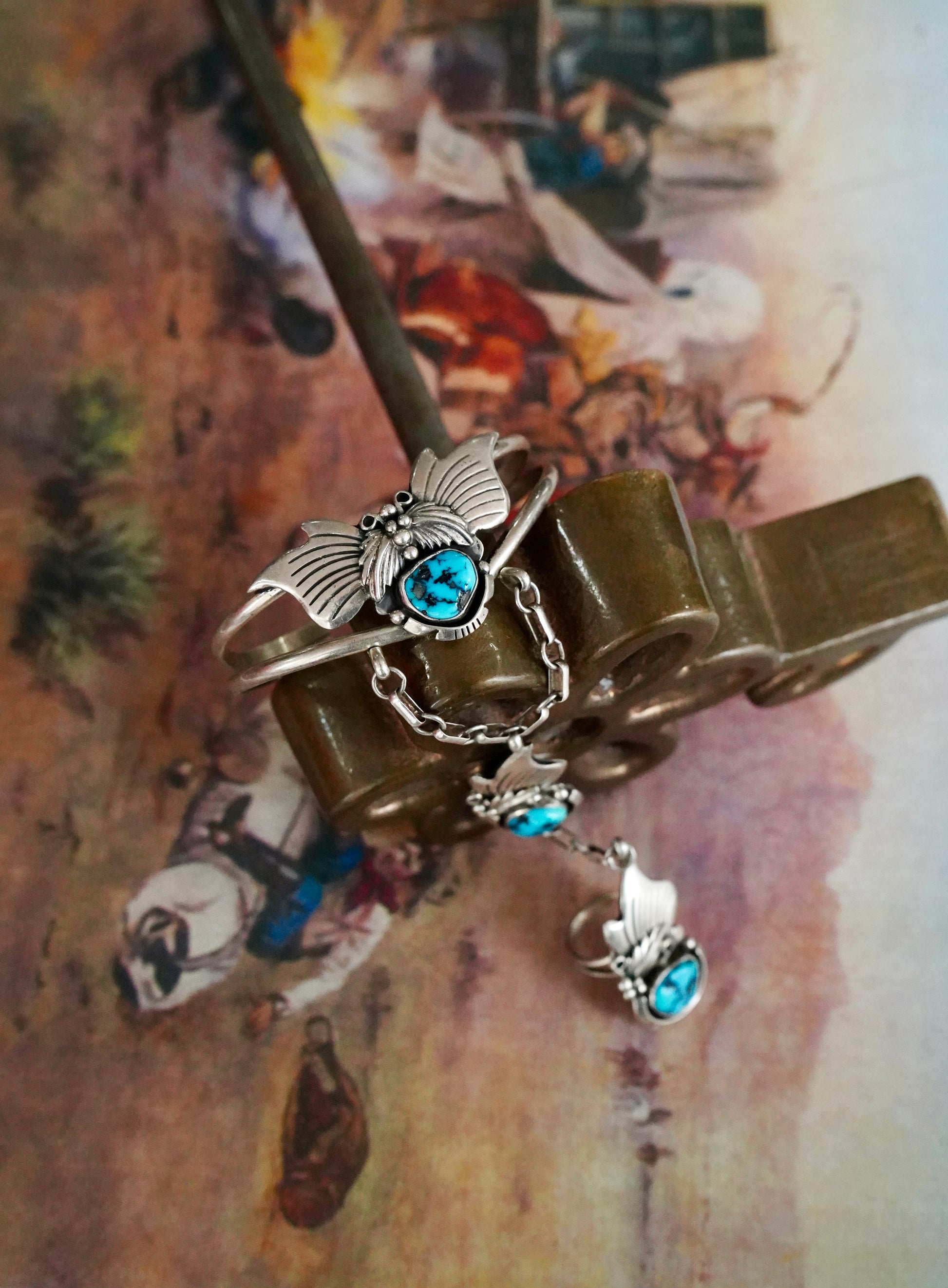 Vintage Turquoise & Leaves Lariat - Sz 5.5