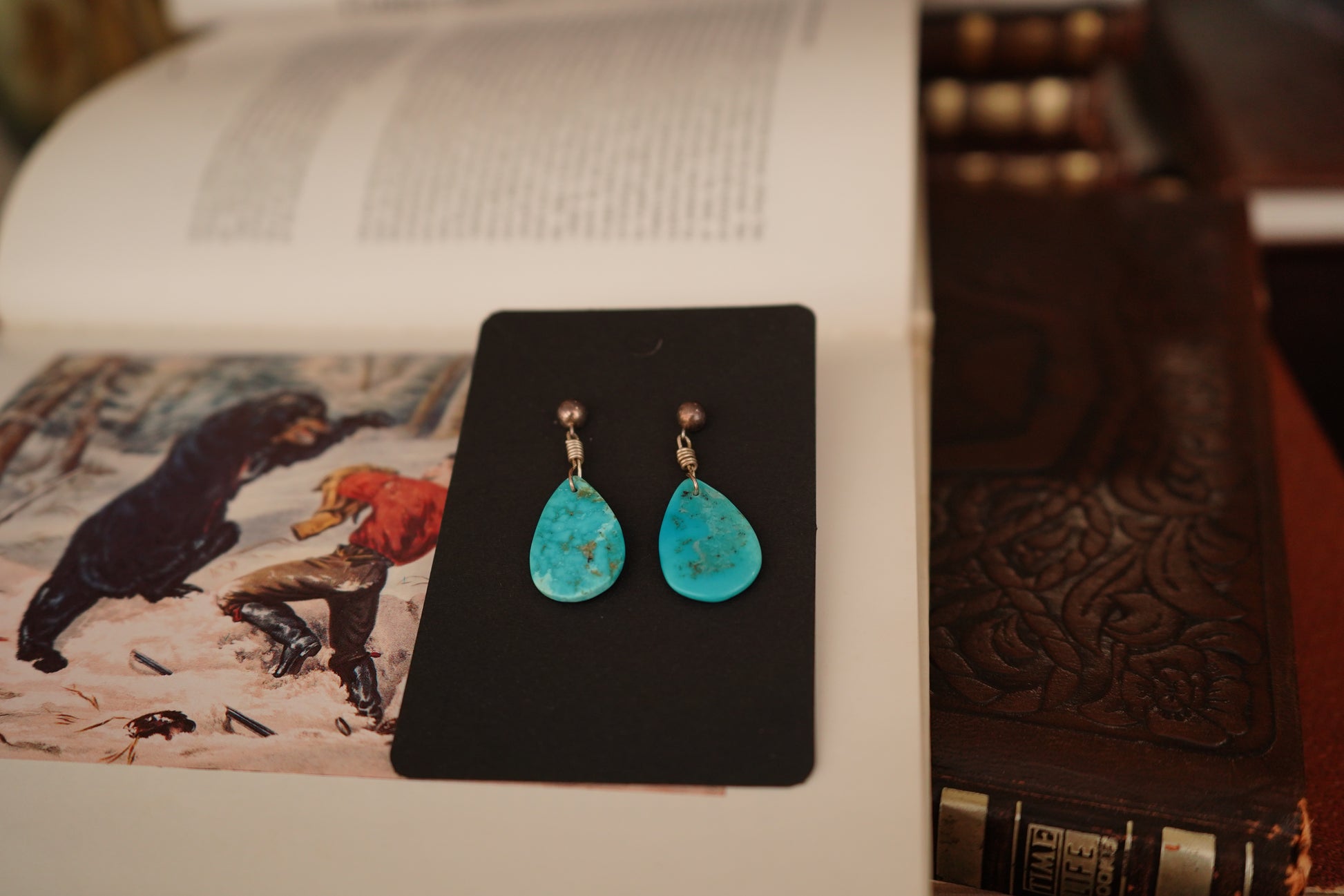 Vintage Turquoise Slab Teardrop Stud Earrings