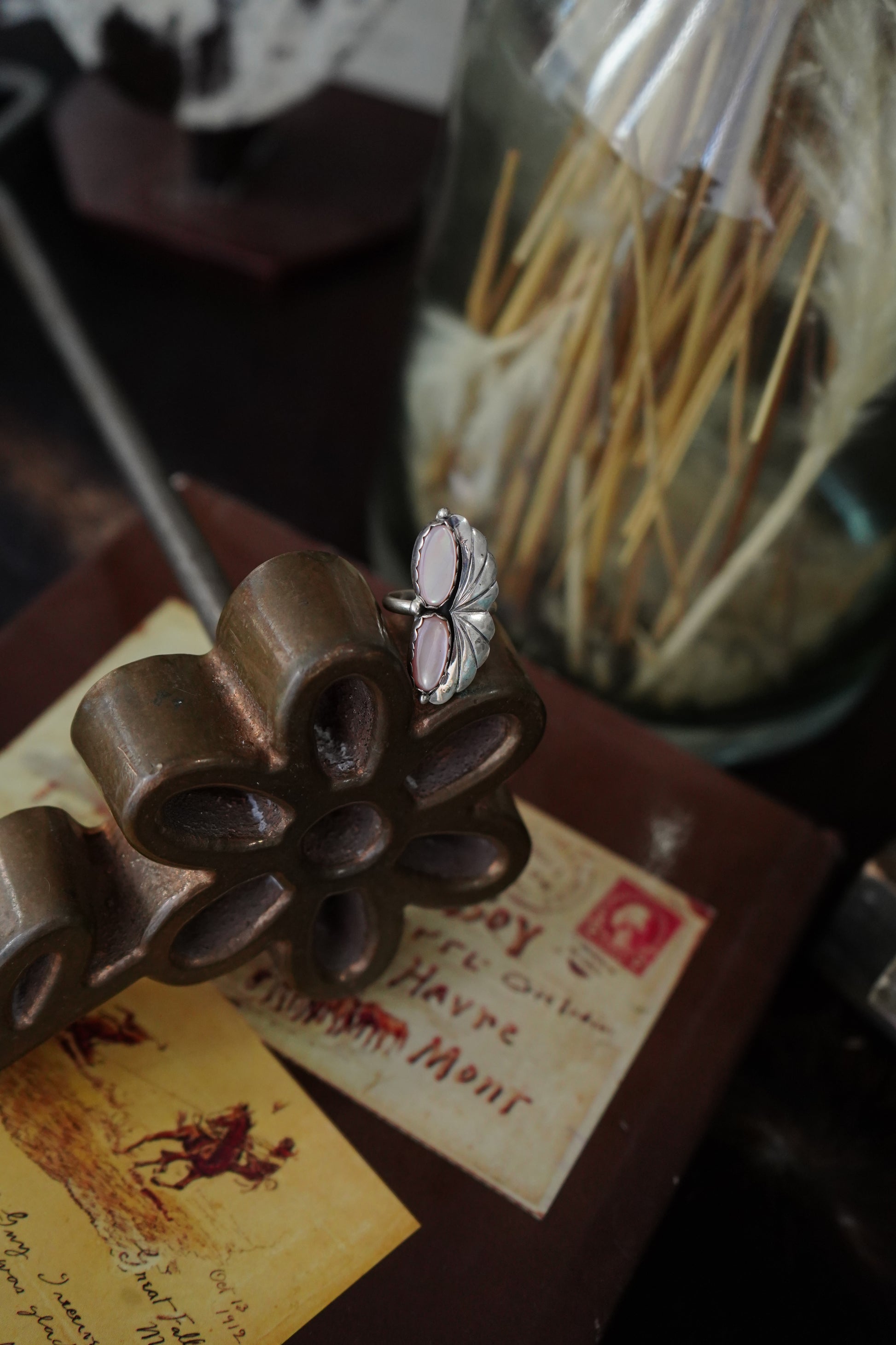Vintage Two Stone Silver MOP Ring - Sz 6.75