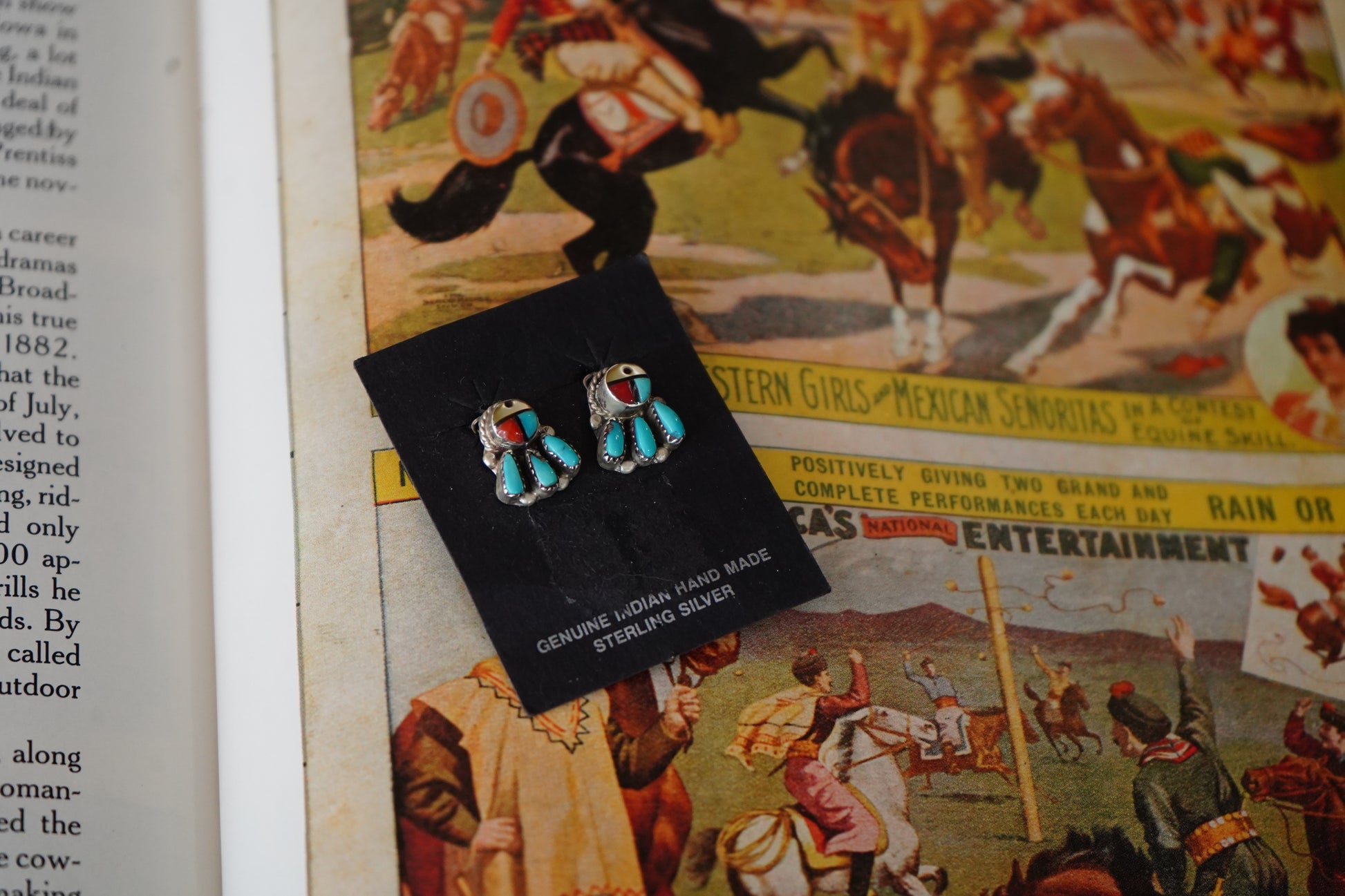 Vintage Zuni Turquoise Inlay Clip On Earrings