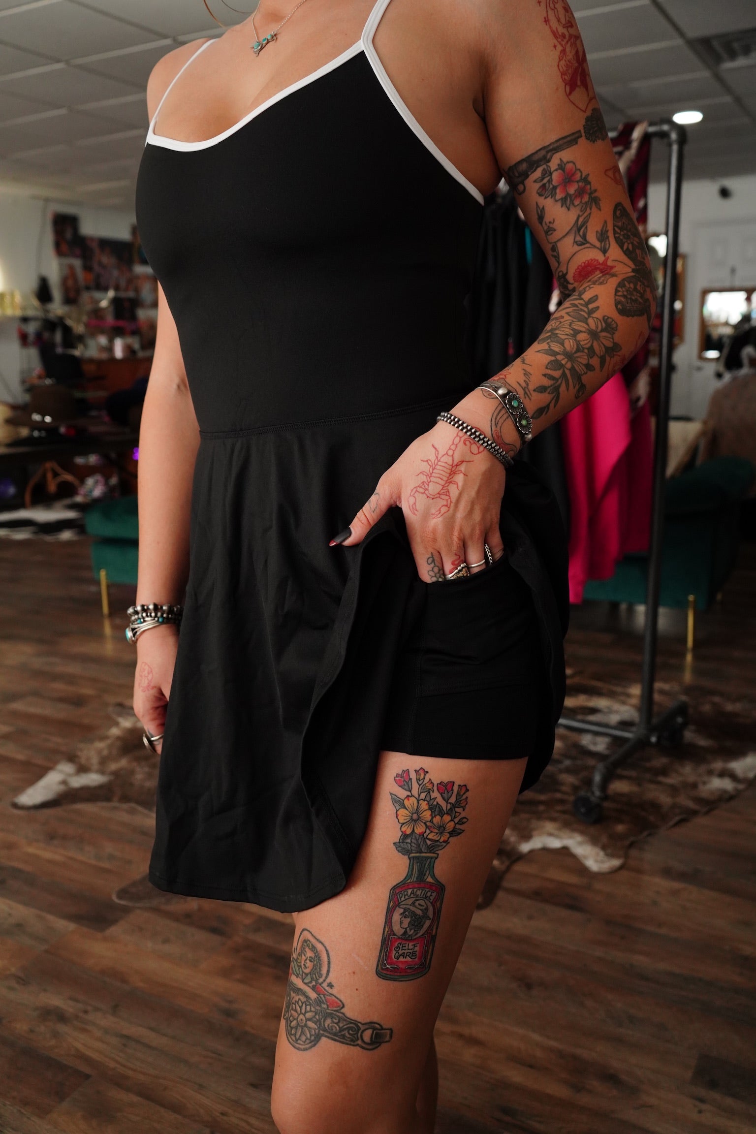 White Trim Spaghetti w/ Daisy Brand Tennis Dresses