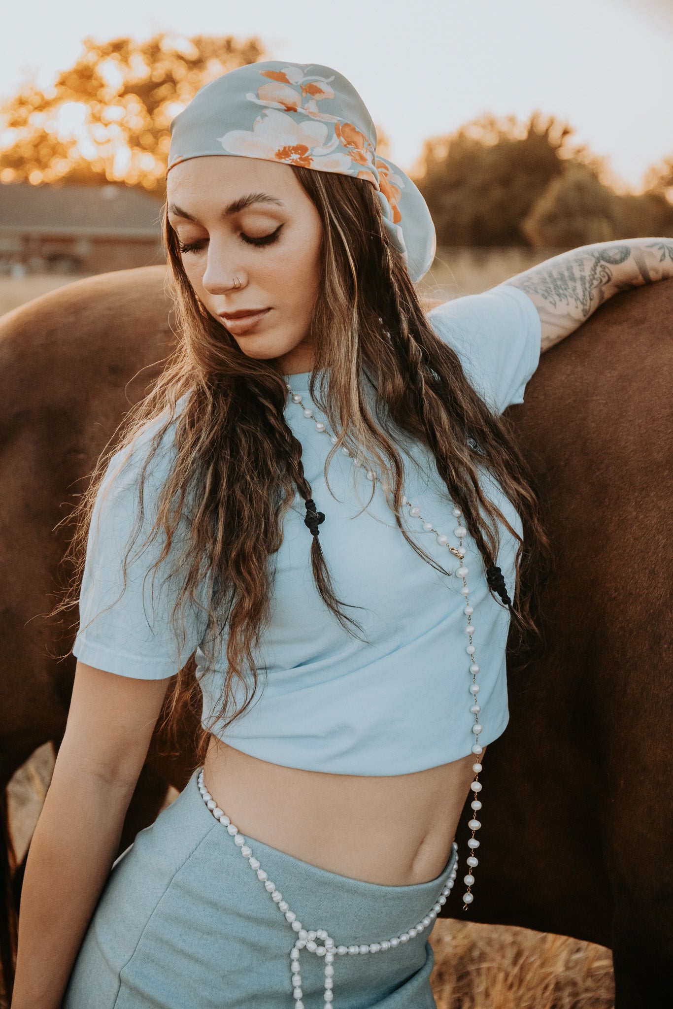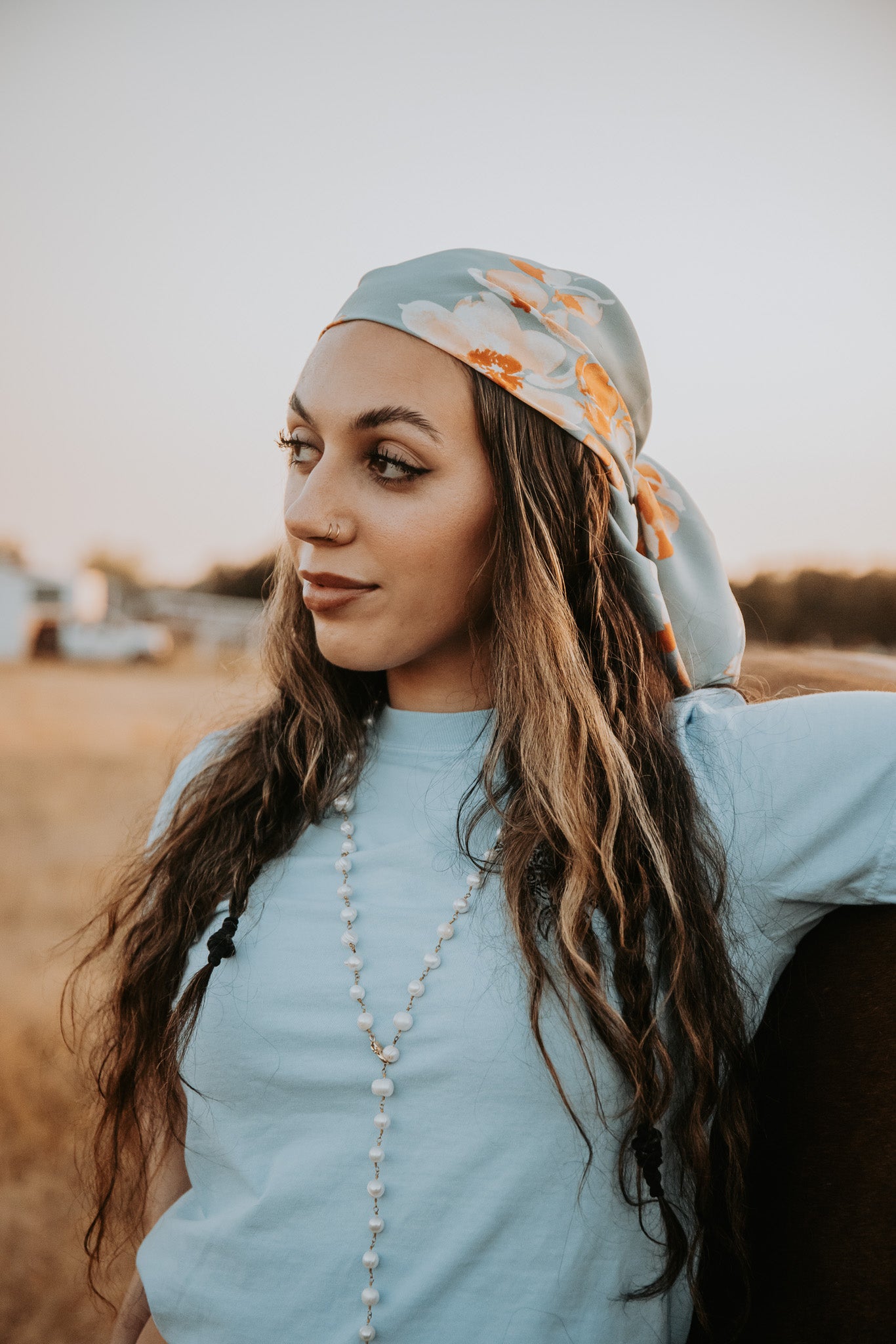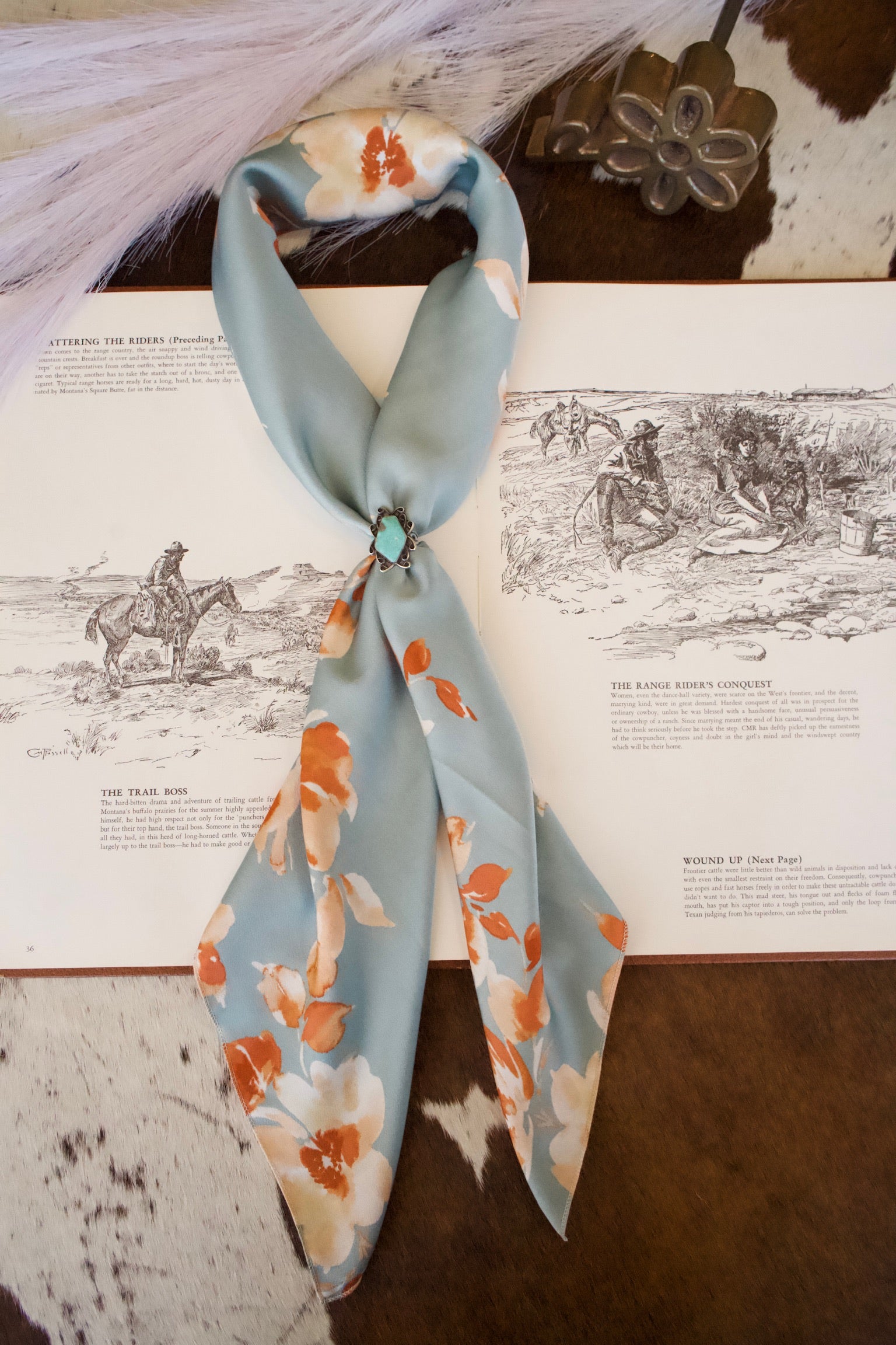 Robins Egg Blue w/ Cream & Rust Flowers DS Wild Rag