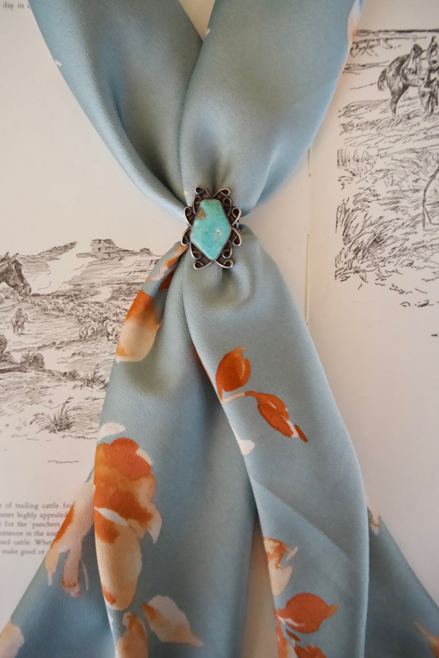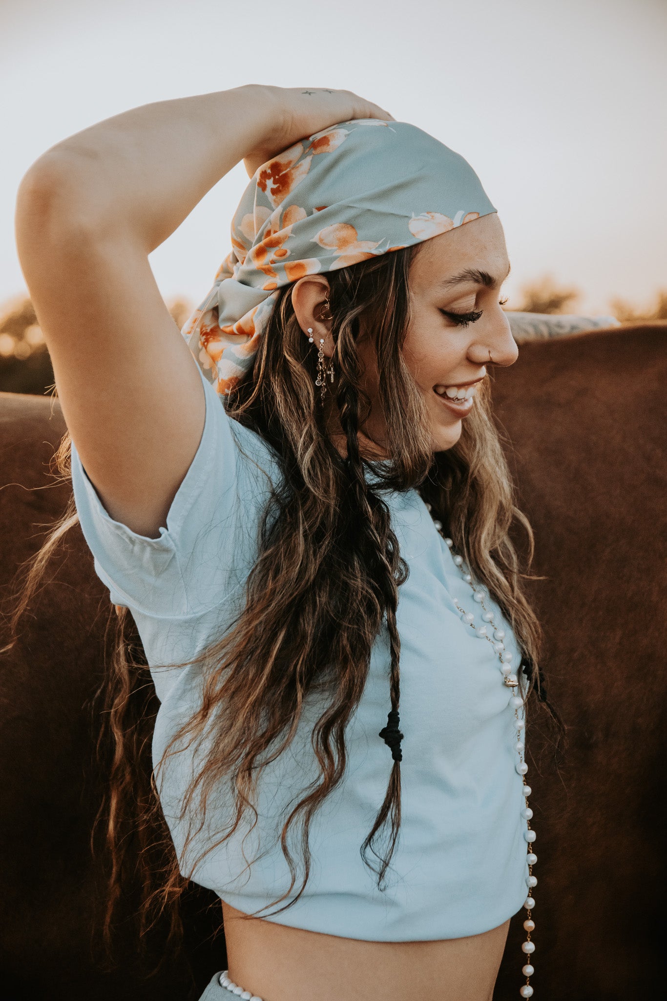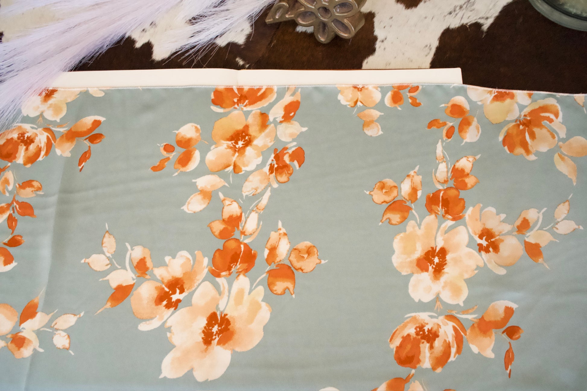 Robins Egg Blue w/ Cream & Rust Flowers DS Wild Rag