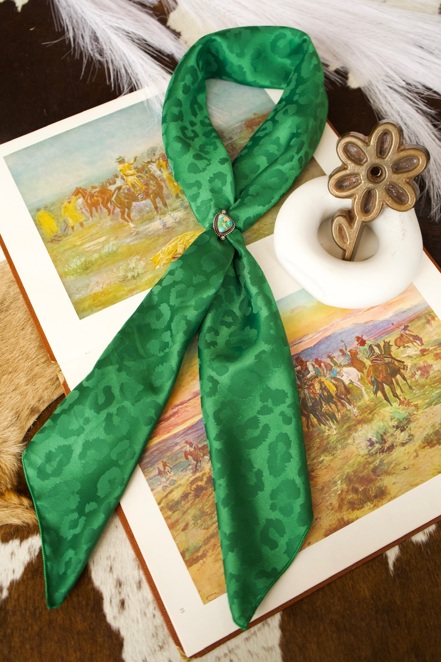 Kelly Green DS Cheetah Wild Rag