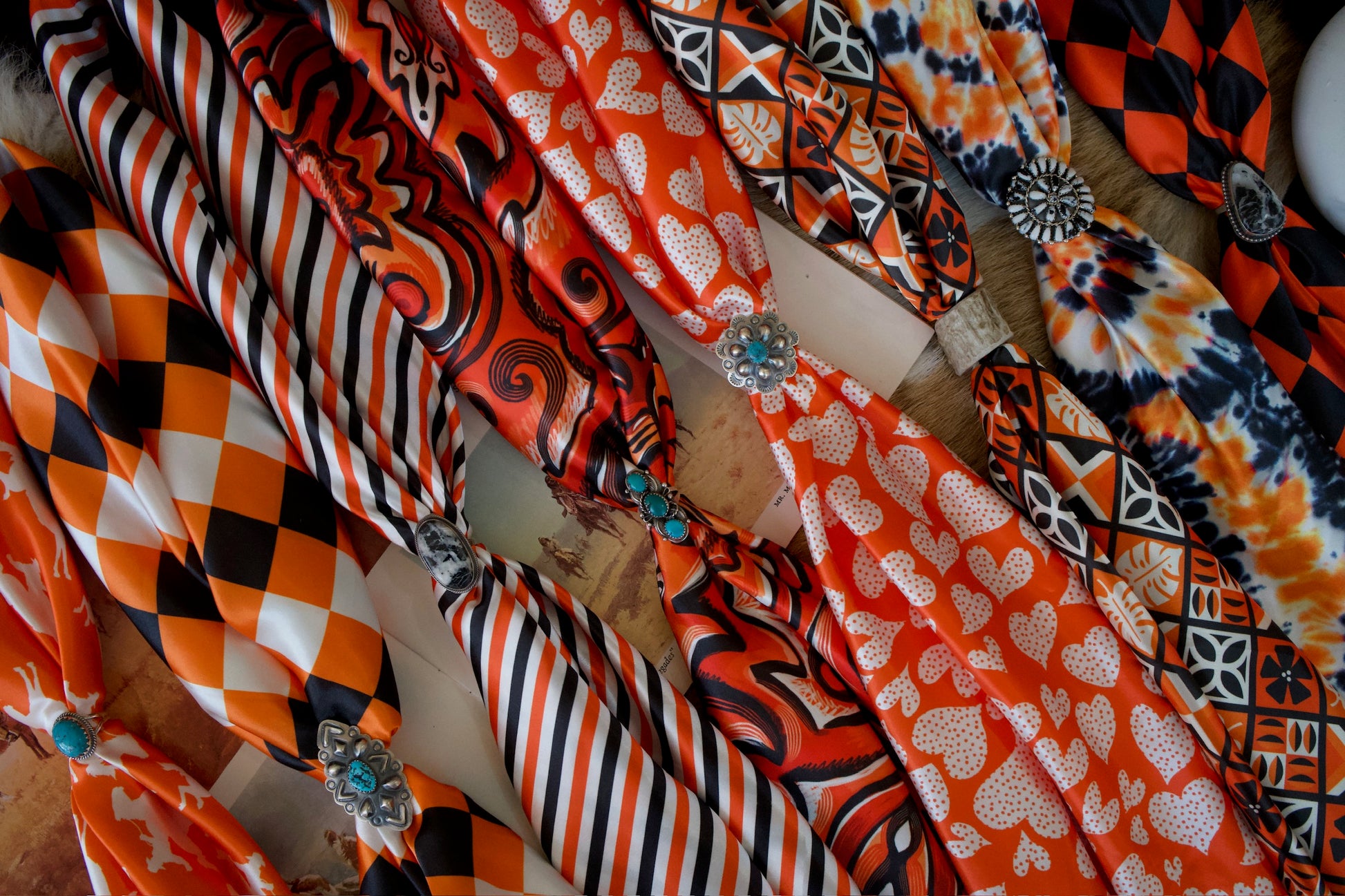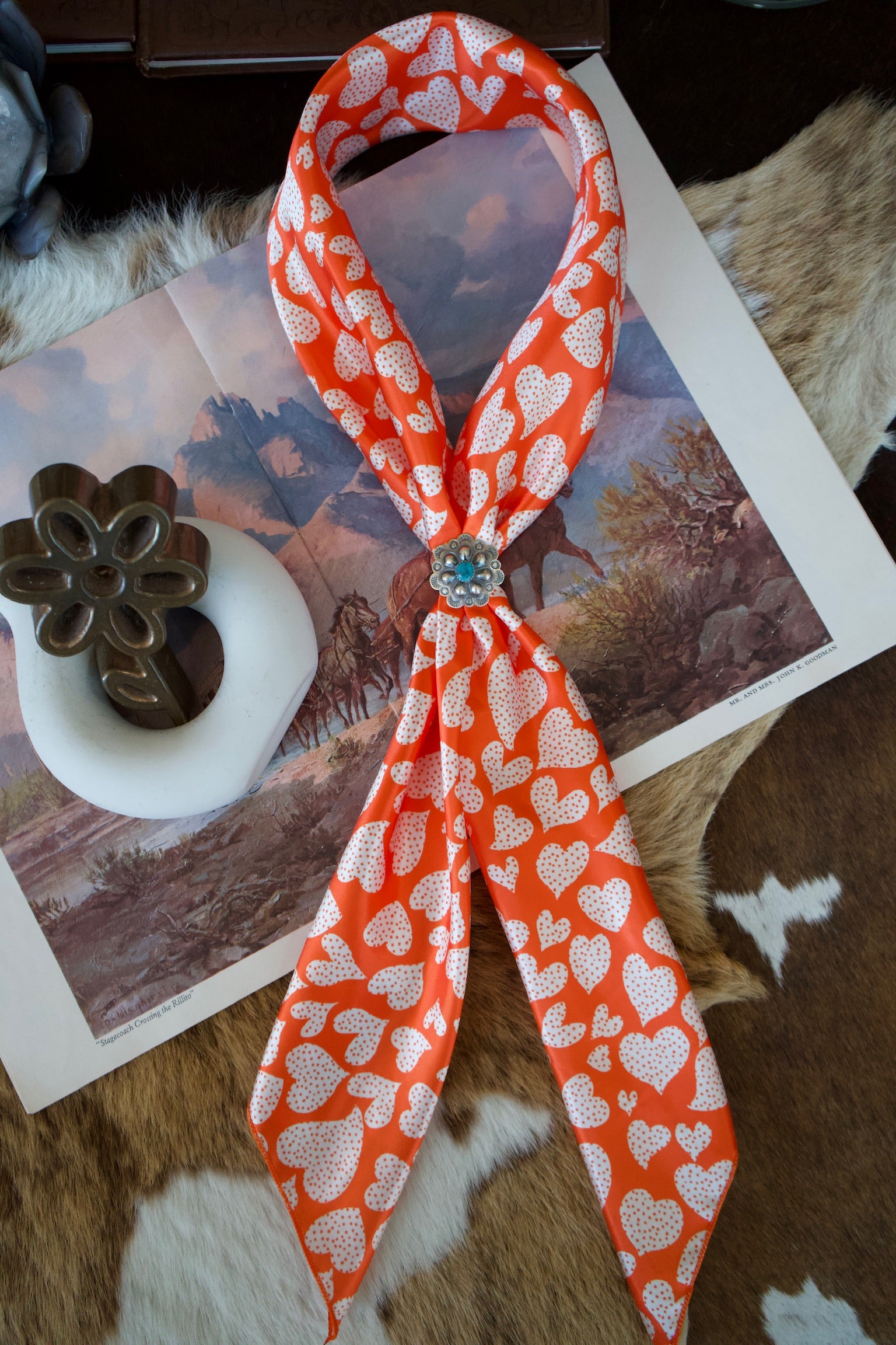 Orange & White Hearts Wild Rag