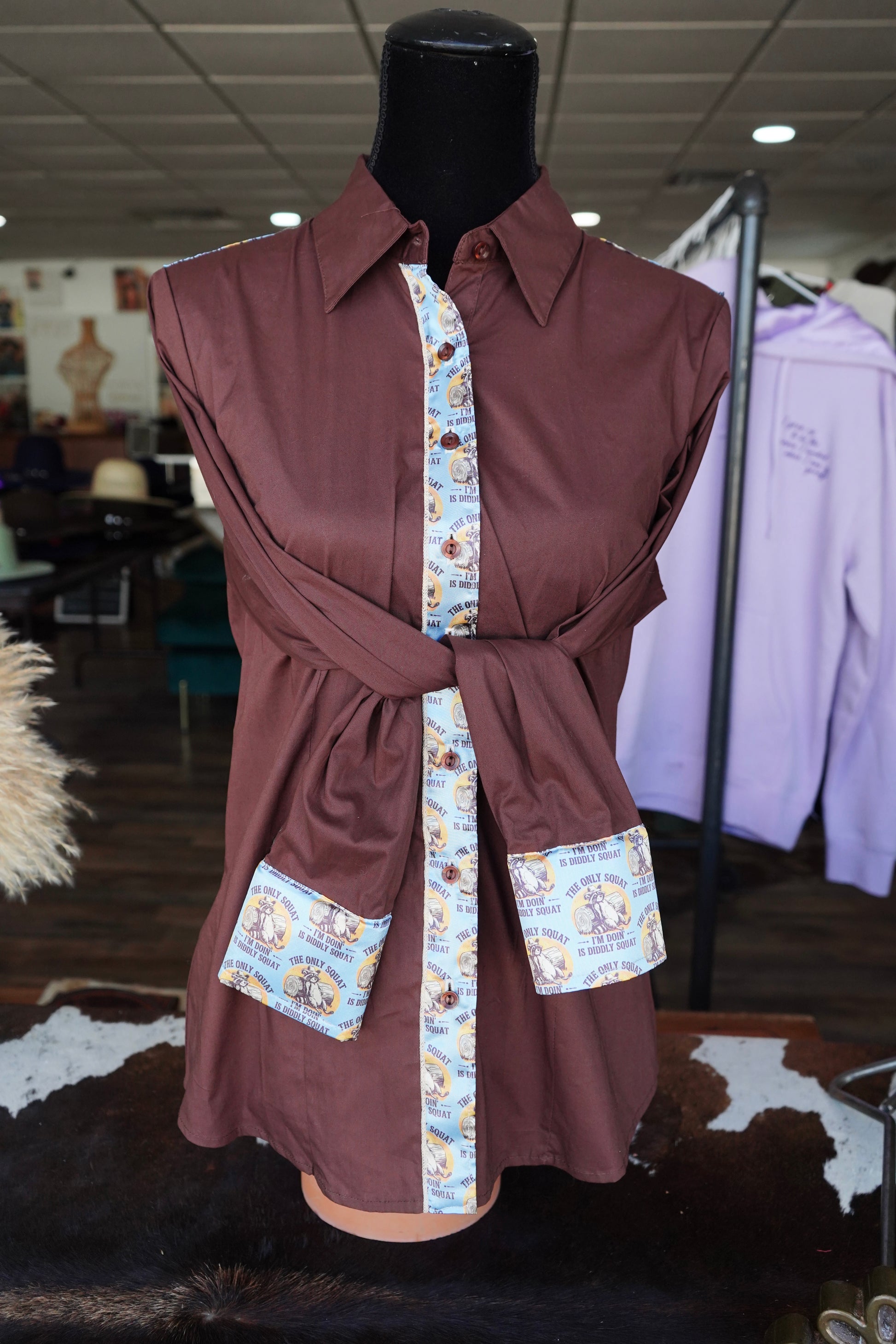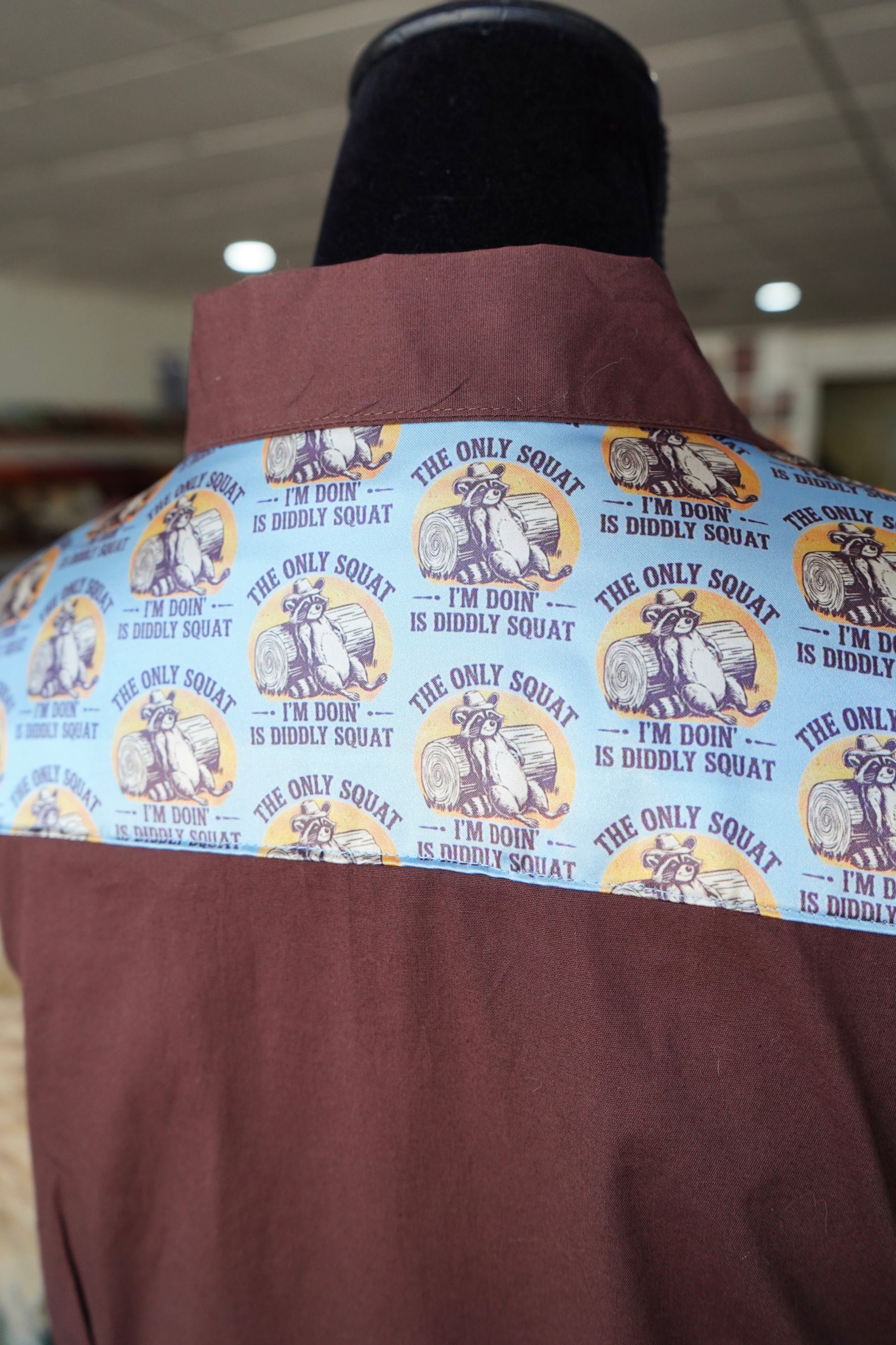 XL - Brown Cotton w/ Diddly Squat Button Down