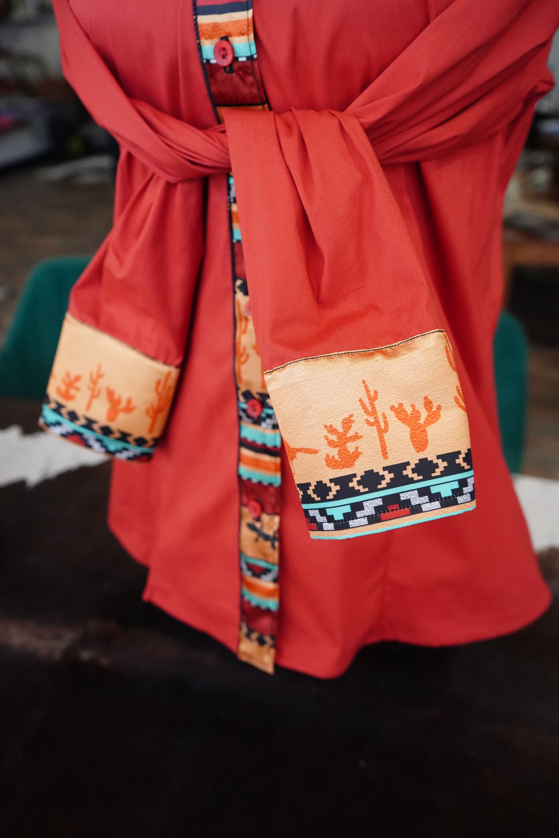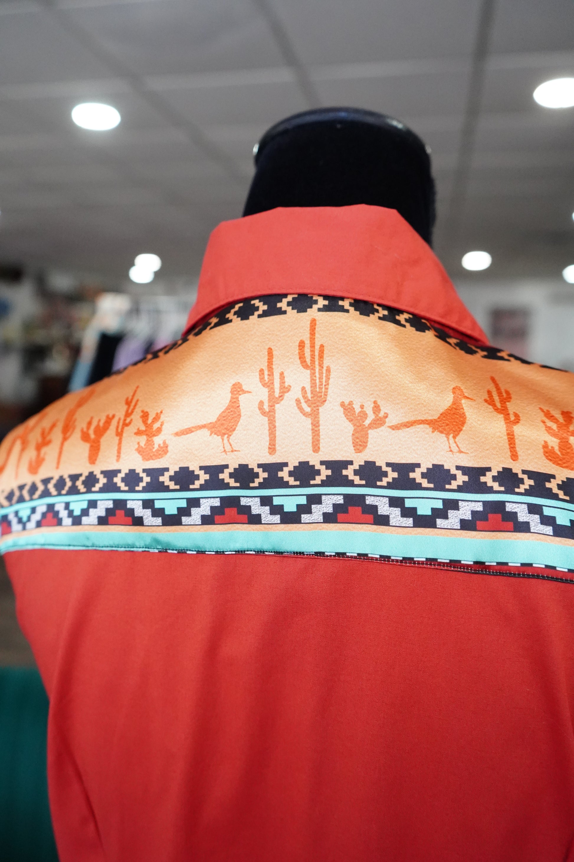 XL - Gecko Stripe on Rust Red Cotton Button Down
