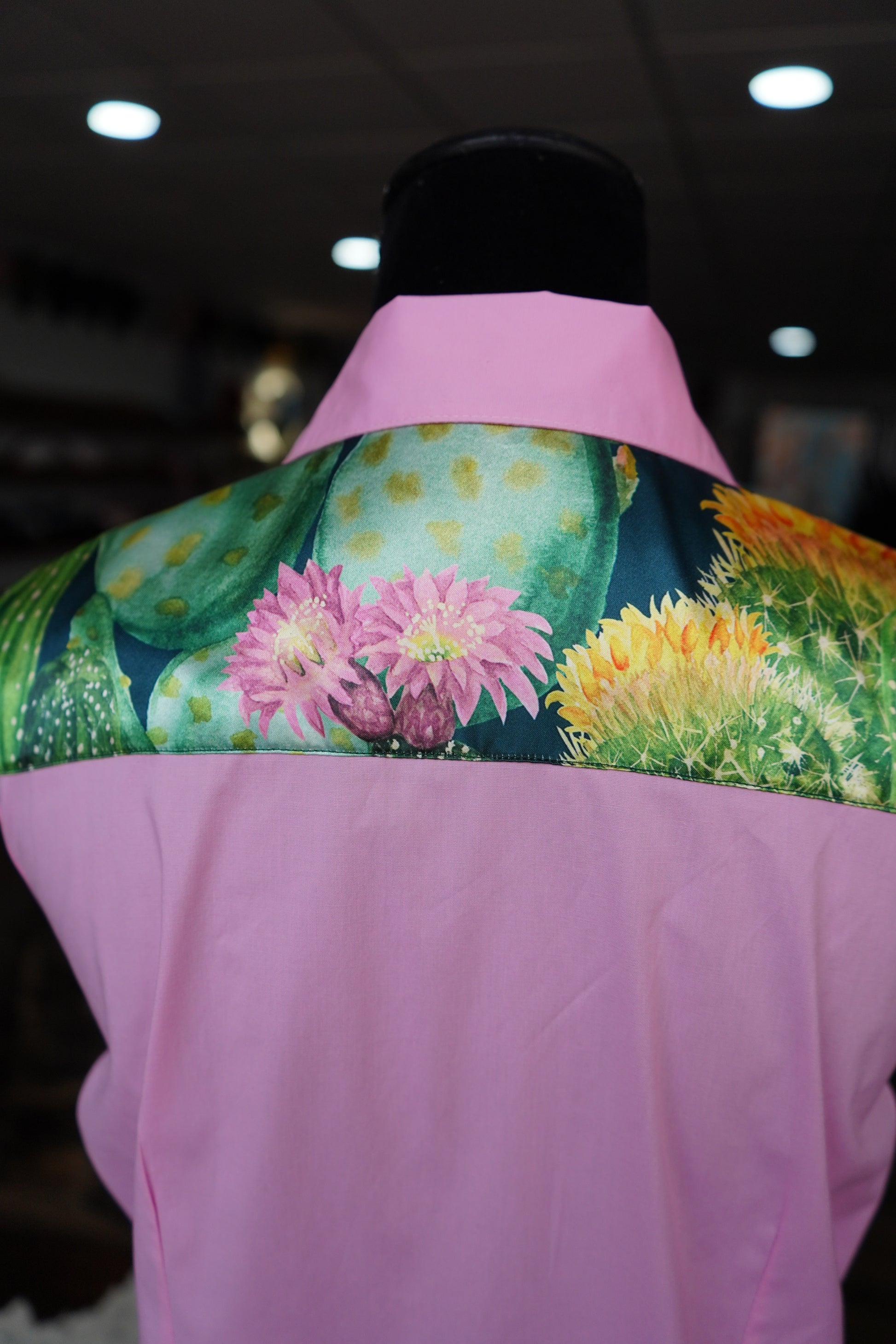 XL - Lg Blooming Cactus on Light Pink Cotton Button Down